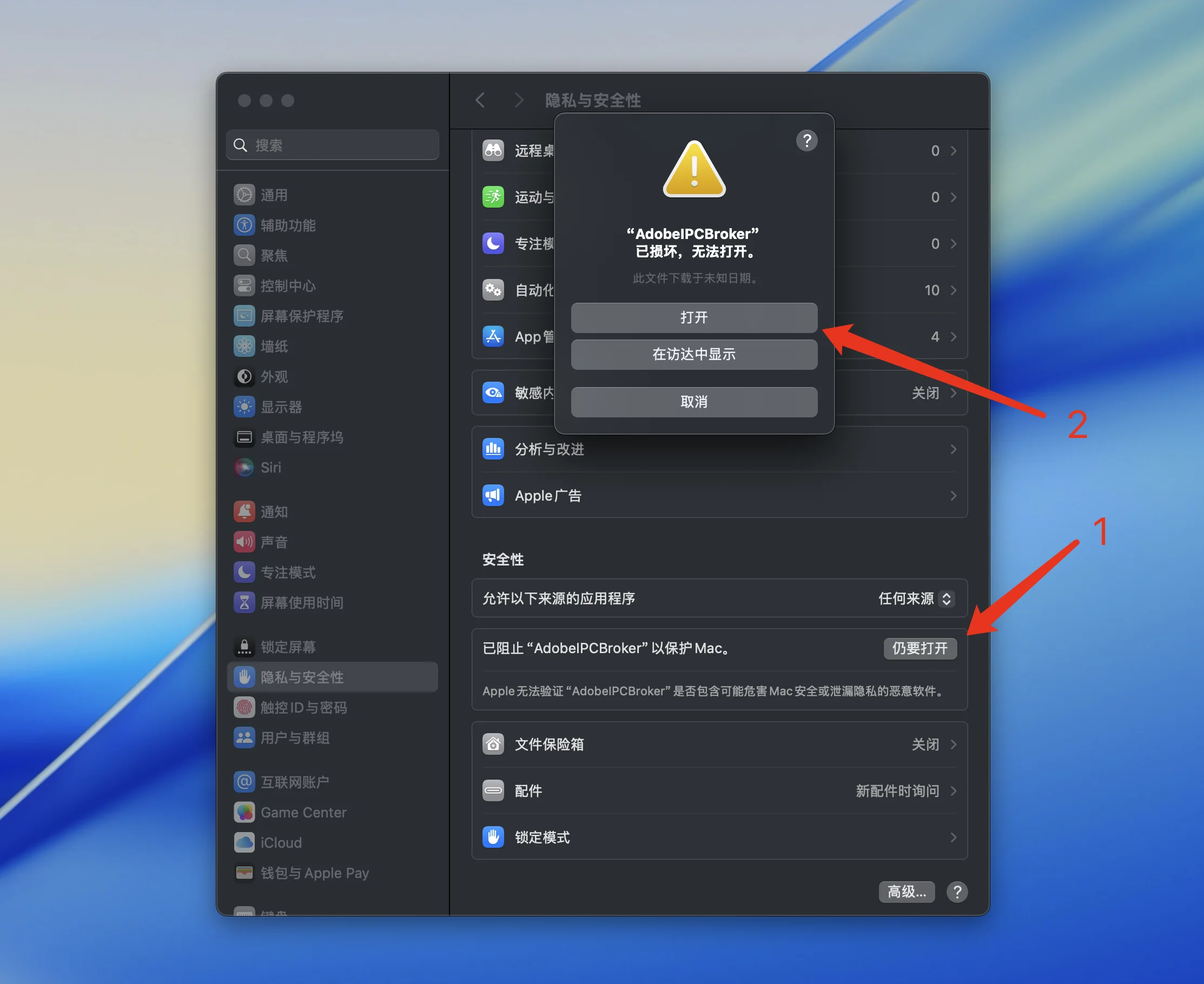 安装完Adobe软件打开后提示“AdobeIPCBroker已损坏,无法打开”解决方法