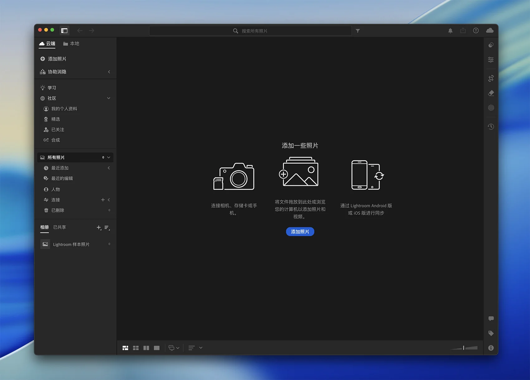 Adobe Photoshop Lightroom是一款专业的数字图像处理和管理软件,旨在帮助摄影师和图像爱好者优化、编辑和组织他们的照片作品。总而言之,Adobe Photoshop Lightroom是一款强大的图像处理和管理软件,旨在满足摄影师和图像爱好者对照片优化、编辑和组织的需求。