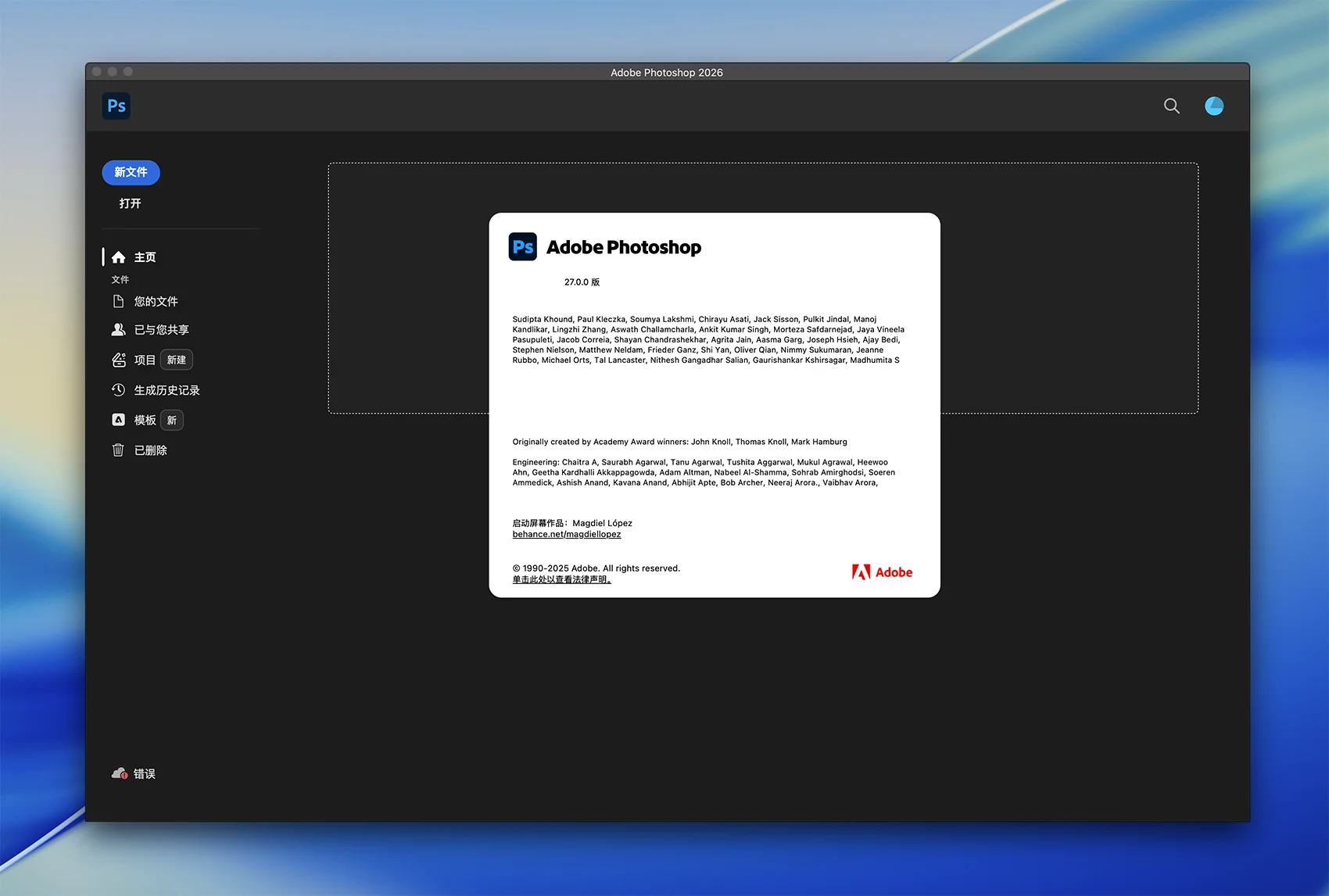 应用玩客 - 精品macOS应用分享 » 【全网首发】Adobe Photoshop 2026 for Mac v27.0 Ps中文原生一键安装版(支持神经滤镜 移除工具 自带CameraRaw8.0滤镜插件)