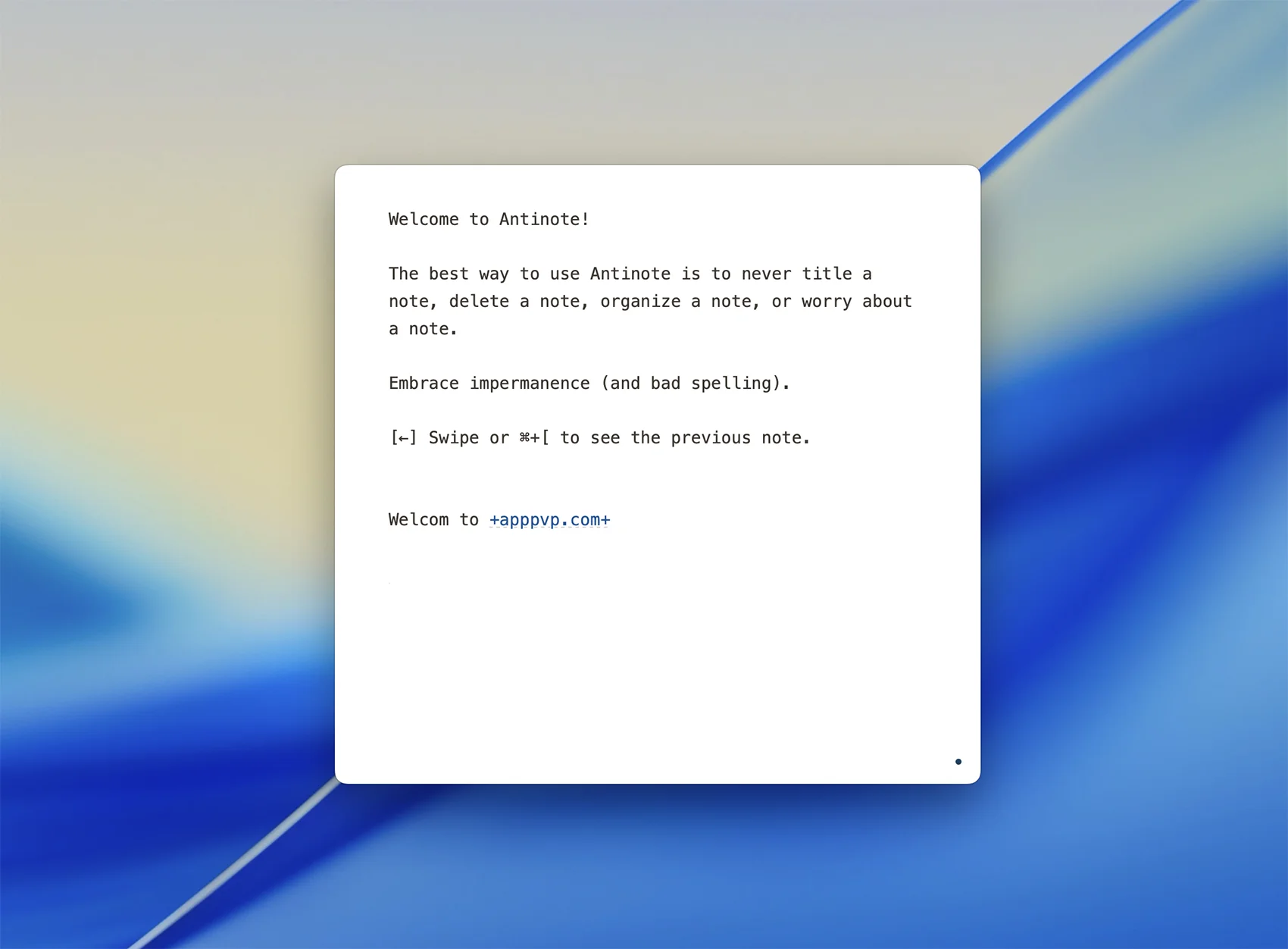 Antinote 是一款专为Mac设计的高效笔记应用,注重速度、便捷性和隐私保护,适合快速记录、临时笔记和日常文本处理,Antinote 设计美观、快捷、易于键盘和隐私。