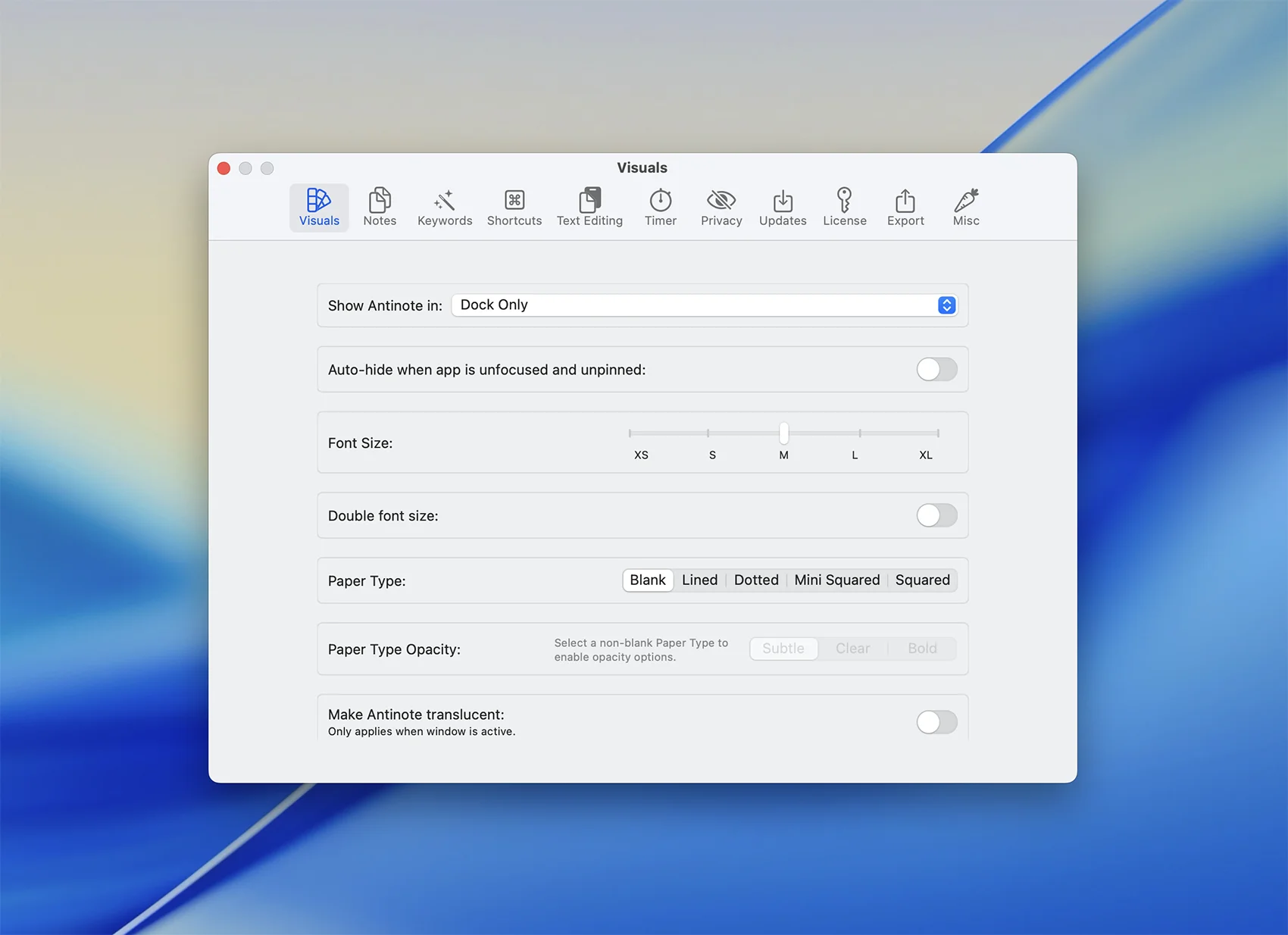 - 全局热键 - 使用 ⌥A 从世界任何地方调用 Antinotes(可自定义)。