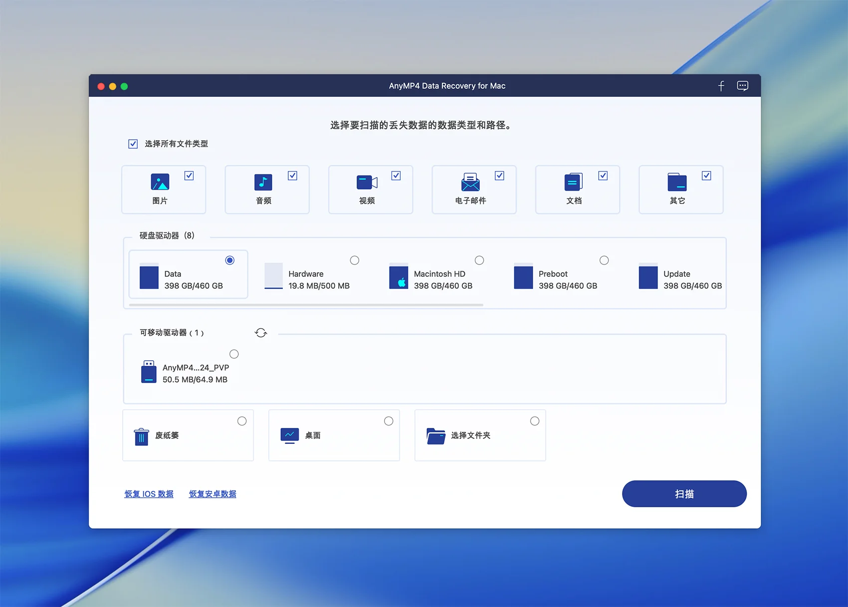 总之,AnyMP4 Data Recovery for Mac是一款功能全面、操作简便的数据恢复软件,是Mac用户恢复数据的理想选择。
