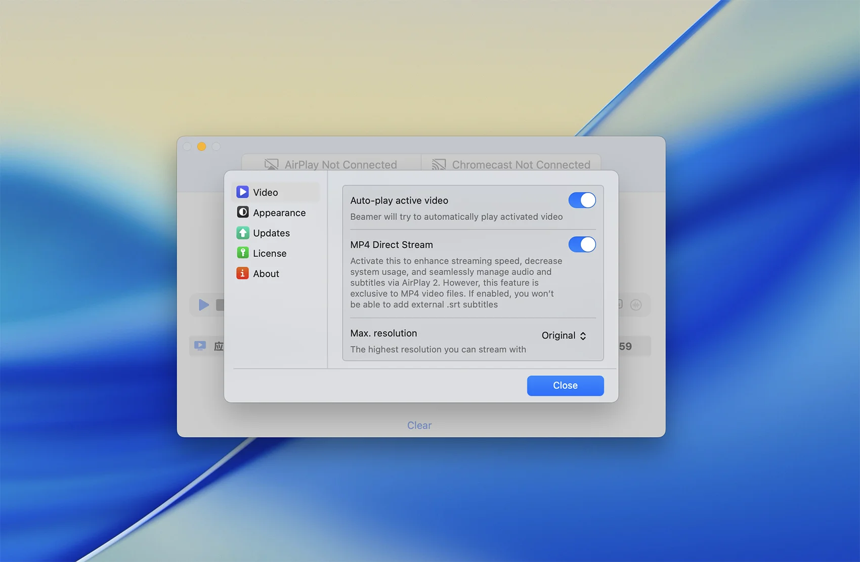 应用玩客 | APPPVP.COM - 精品macOS应用分享,Windows破解软件下载 » Beamer for Mac v4.2.0 TV流媒体视频播放隔空镜像工具