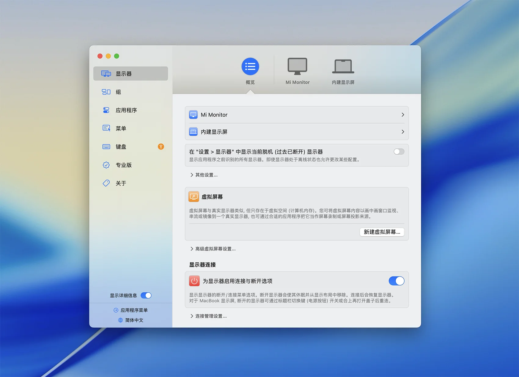 - 各种 CLI 和应用程序集成功能(命令行、betterdisplaycli、自定义 URL 模式、HTTP、通知)。