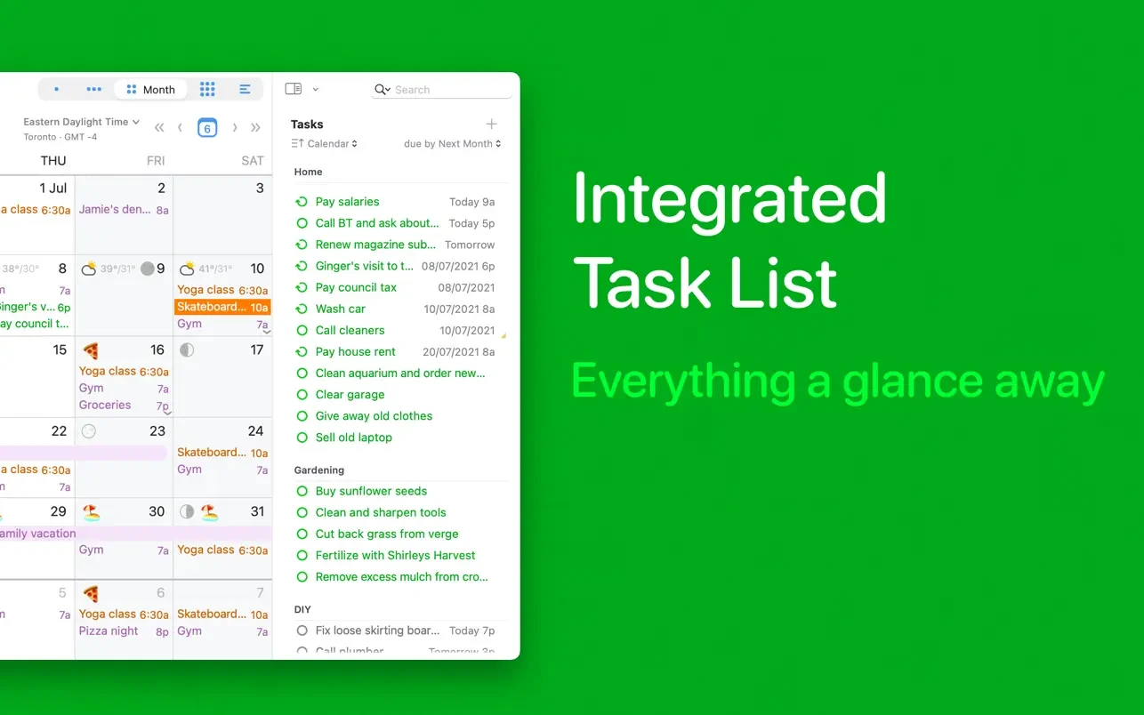 并见证日历如何将它们无缝融入您的日常生活。BusyCal 让您的任务始终在您的日程安排中占据重要位置,是长期规划的理想之选。您的任务列表会自动与其他提醒应用同步,让您永远不会忘记下一步要做什么。这款应用甚至还配备了一个专属的待办事项清单,只需单击一下即可访问。