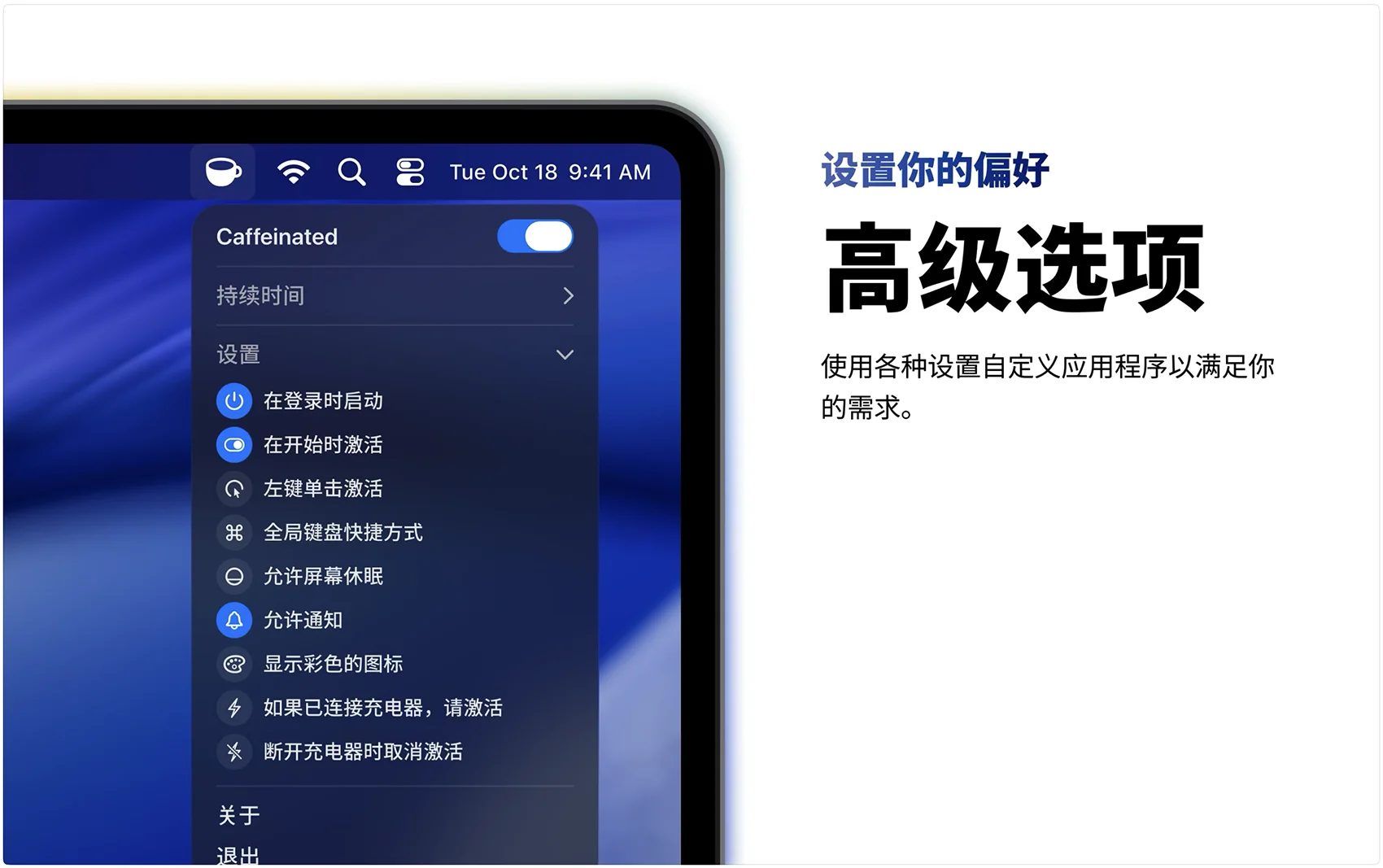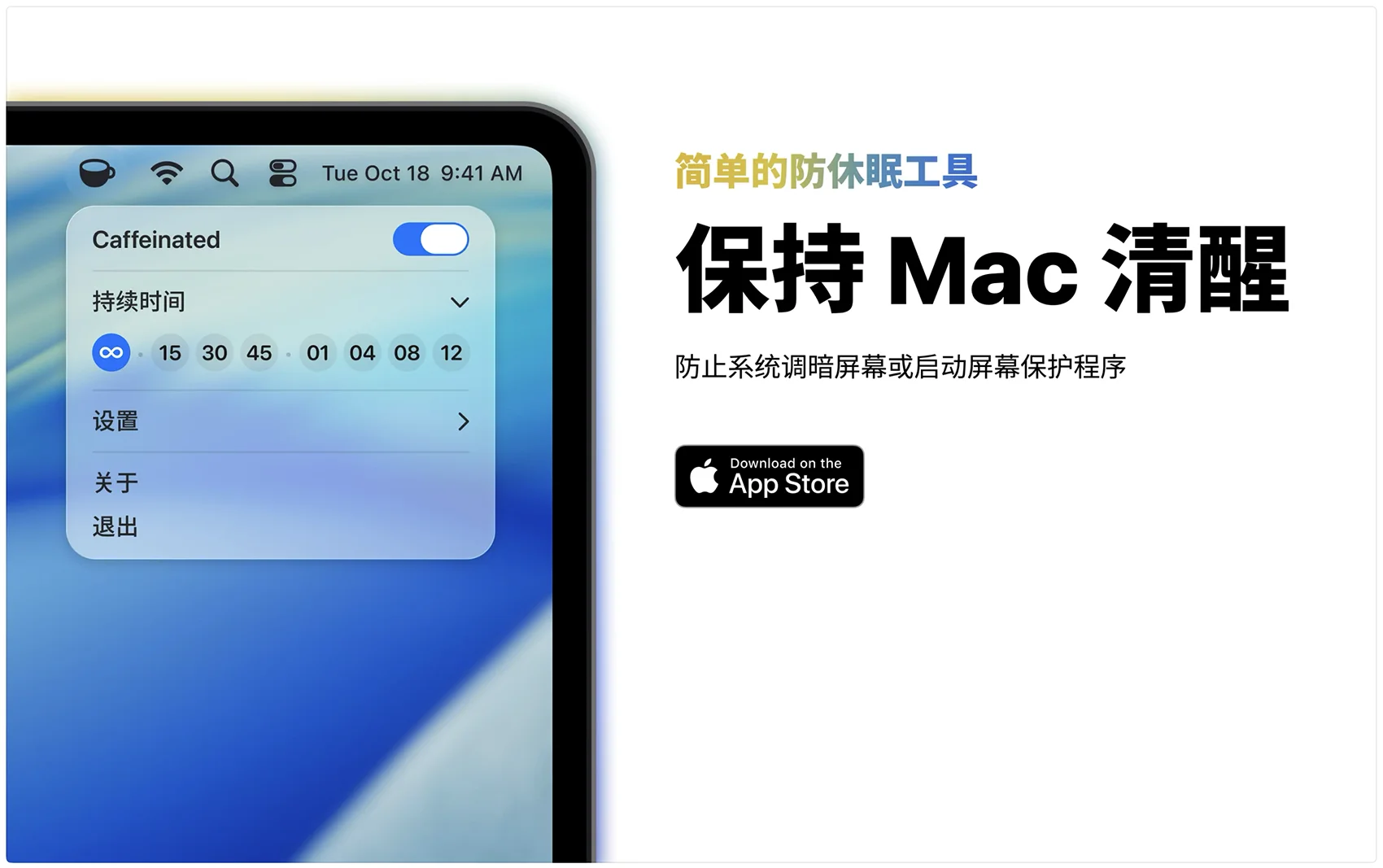 Caffeinated for Mac v3.0.0 防止Mac睡眠屏幕保护工具中文版