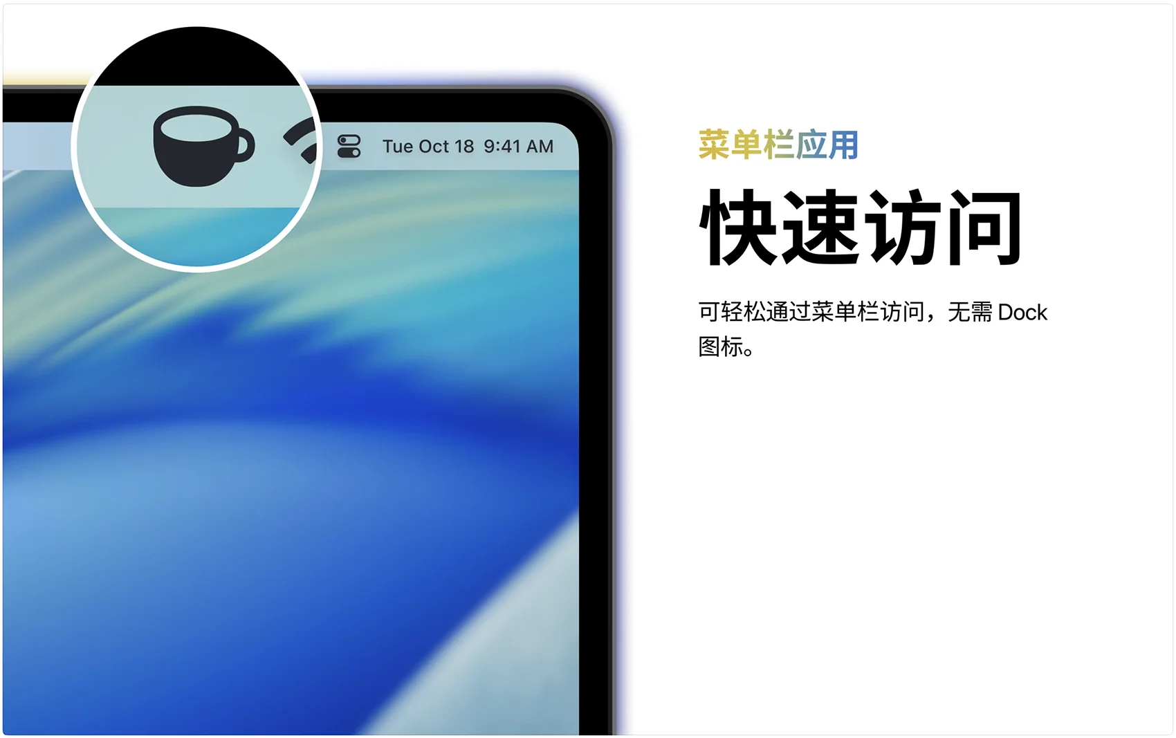 - 可通过菜单栏中的咖啡杯图标进行管理