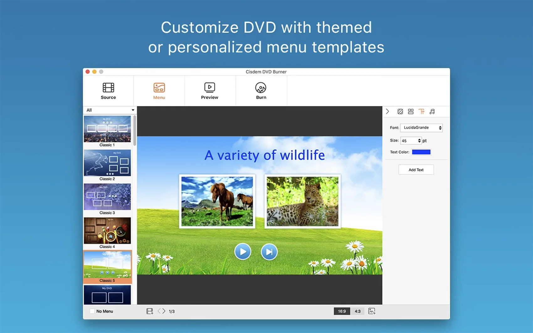 - 根据自己的想法自定义视频并将其存储在DVD中。Mac版DVD刻录机为您提供了强大的视频编辑和菜单自定义功能,可以制作出完美的DVD!