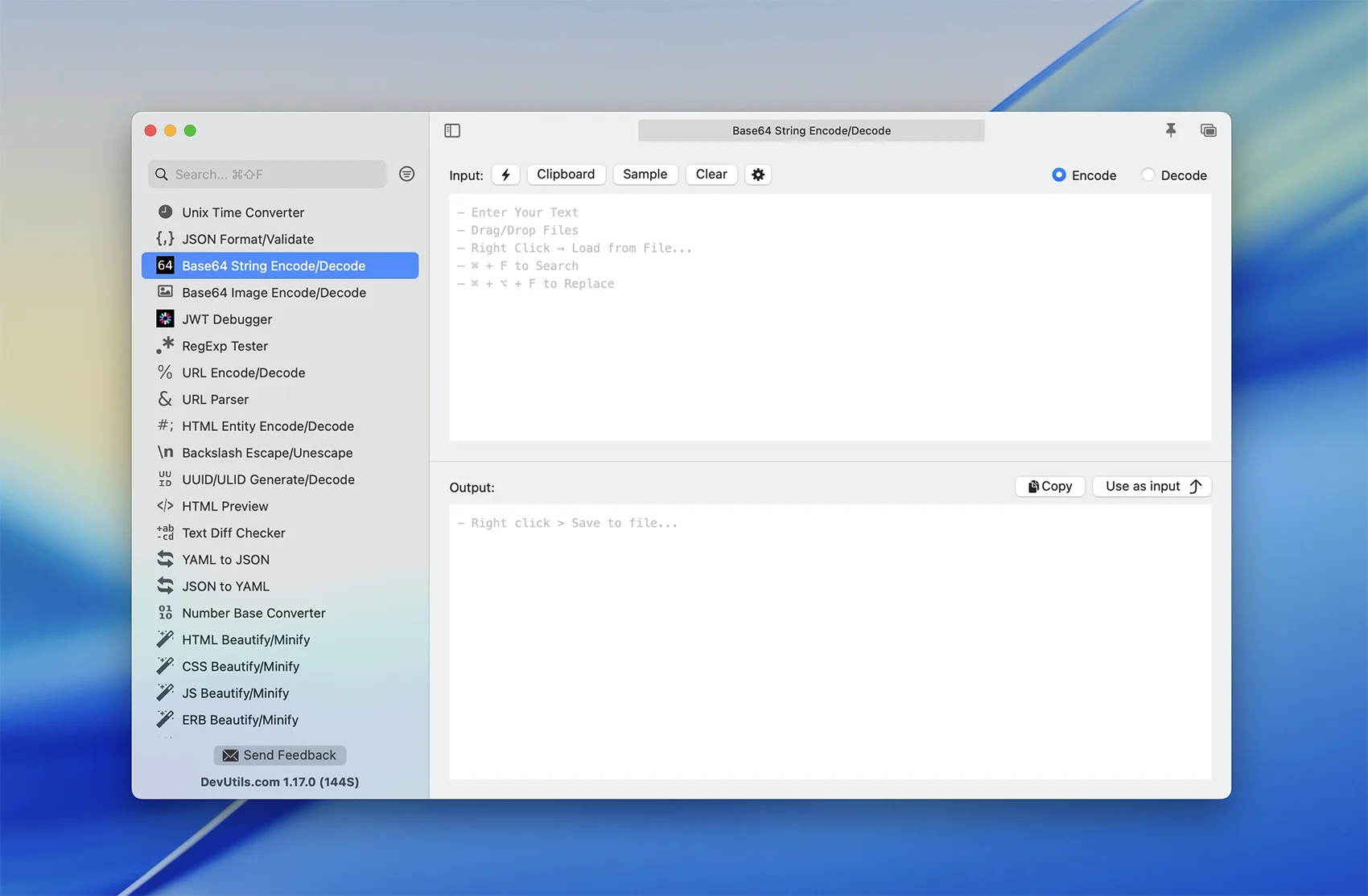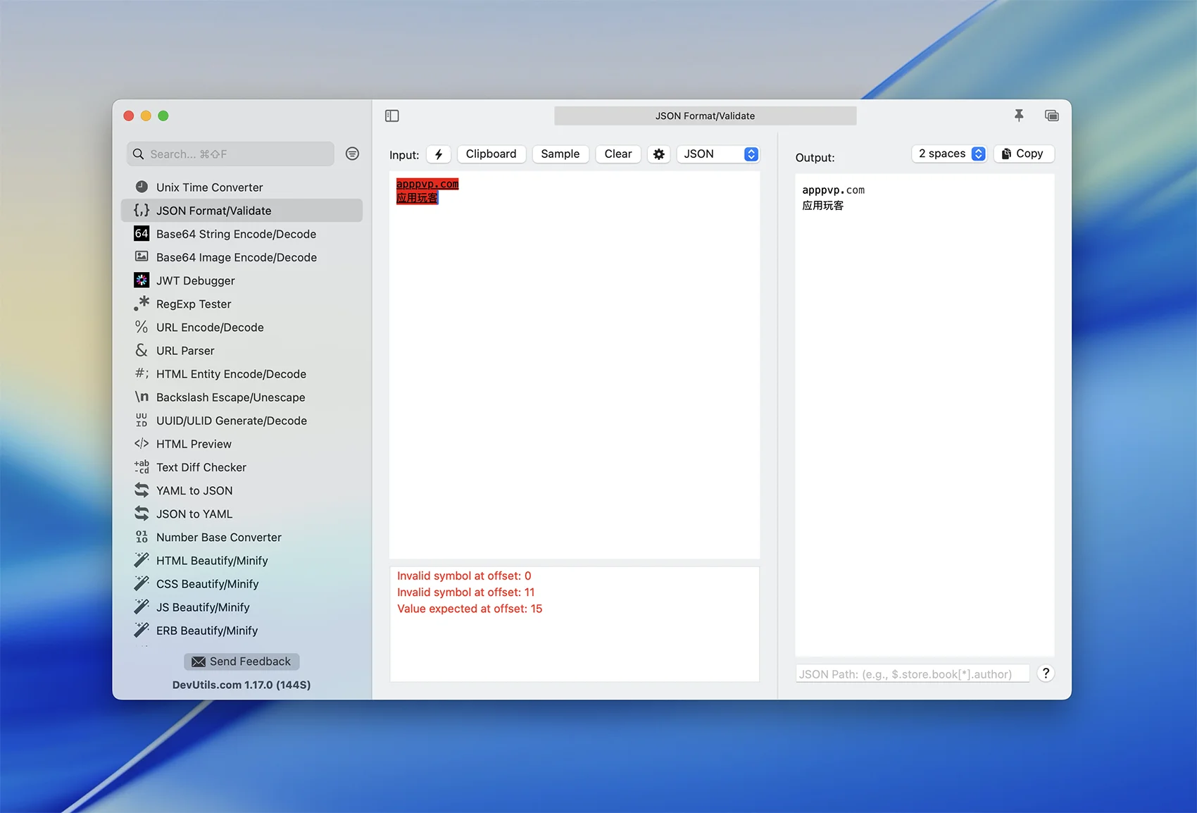 DevUtils 是一款面向开发人员的离线工具箱,只需一键操作,即可完成JSON格式化、Base64解码、时间戳转换、JWT调试等任务!原生macOS应用,完全离线工作。