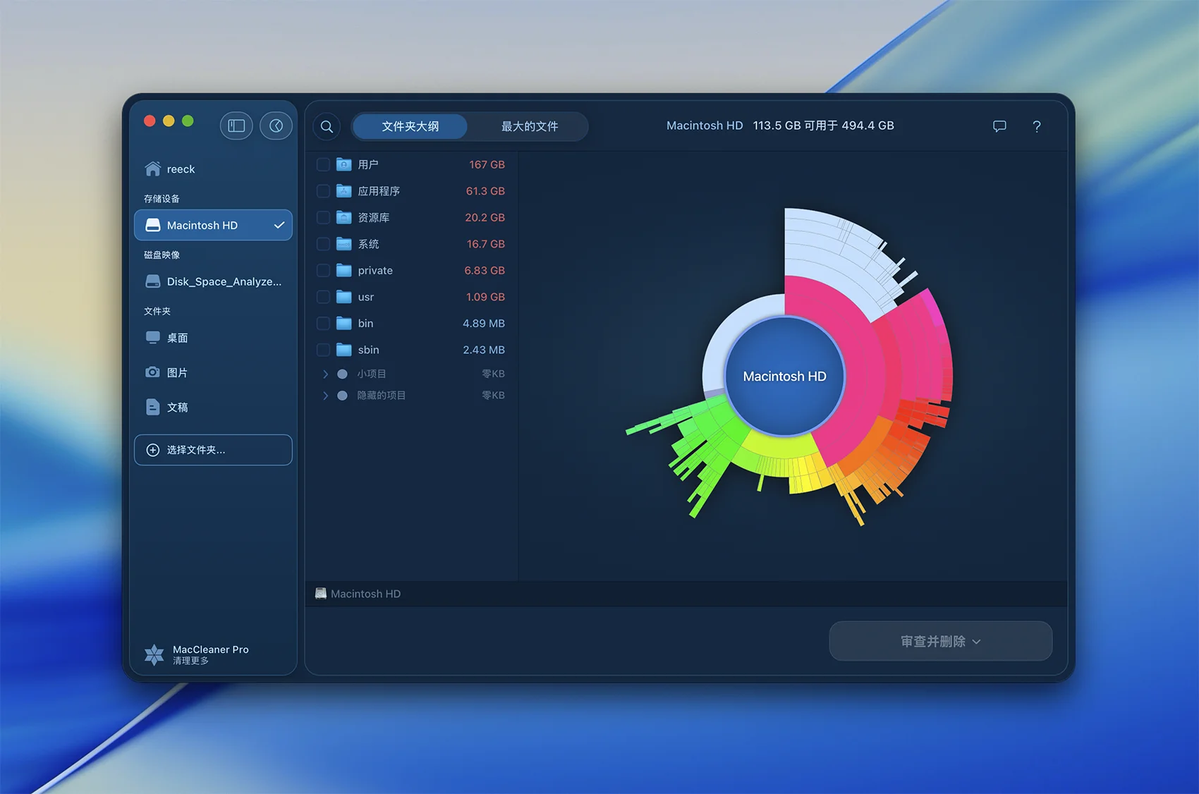 这款磁盘清理器可让您轻松找到 Mac 存储中,任何文件夹和Dropbox 甚至外部存储中最庞大的内容。 您可以查看 Mac 磁盘使用情况、查找占用空间最多的文件夹、检测旧的未使用文件,最后通过移动或删除不需要的文件来管理硬盘空间。 您可以在几分钟内清理 Mac 内存!