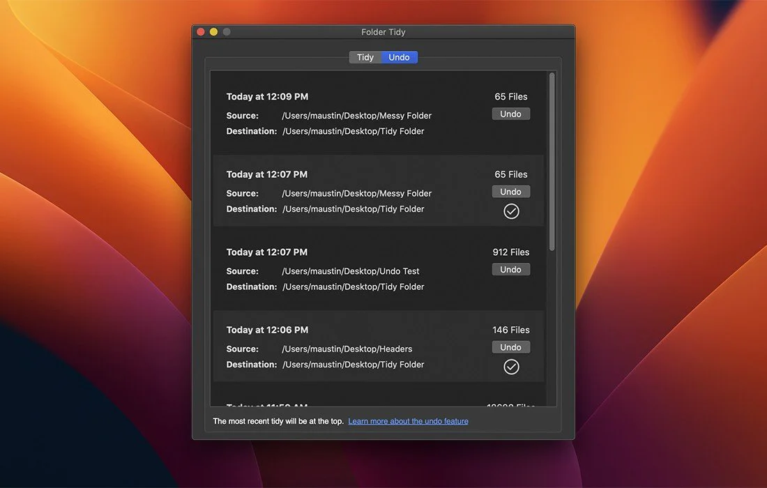 如果事实证明排序并没有完全按照您的意愿进行,没关系,只需单击“撤消”按钮,所有内容都会移动到它的位置。该程序即使在您退出系统后也能正常工作,保留完整的旧动作列表,并能够随时将所有文件返回到它们的位置。