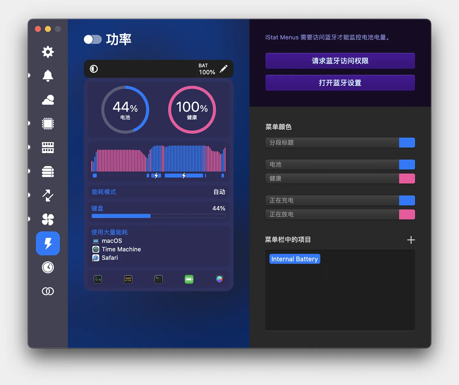 有关电池当前状态的详细信息,以及一个高度可配置的菜单项,该菜单项可以在您耗尽、充电或完全充电时更改。Magic Mouse、Magic Trackpad和Apple无线键盘电池电量。