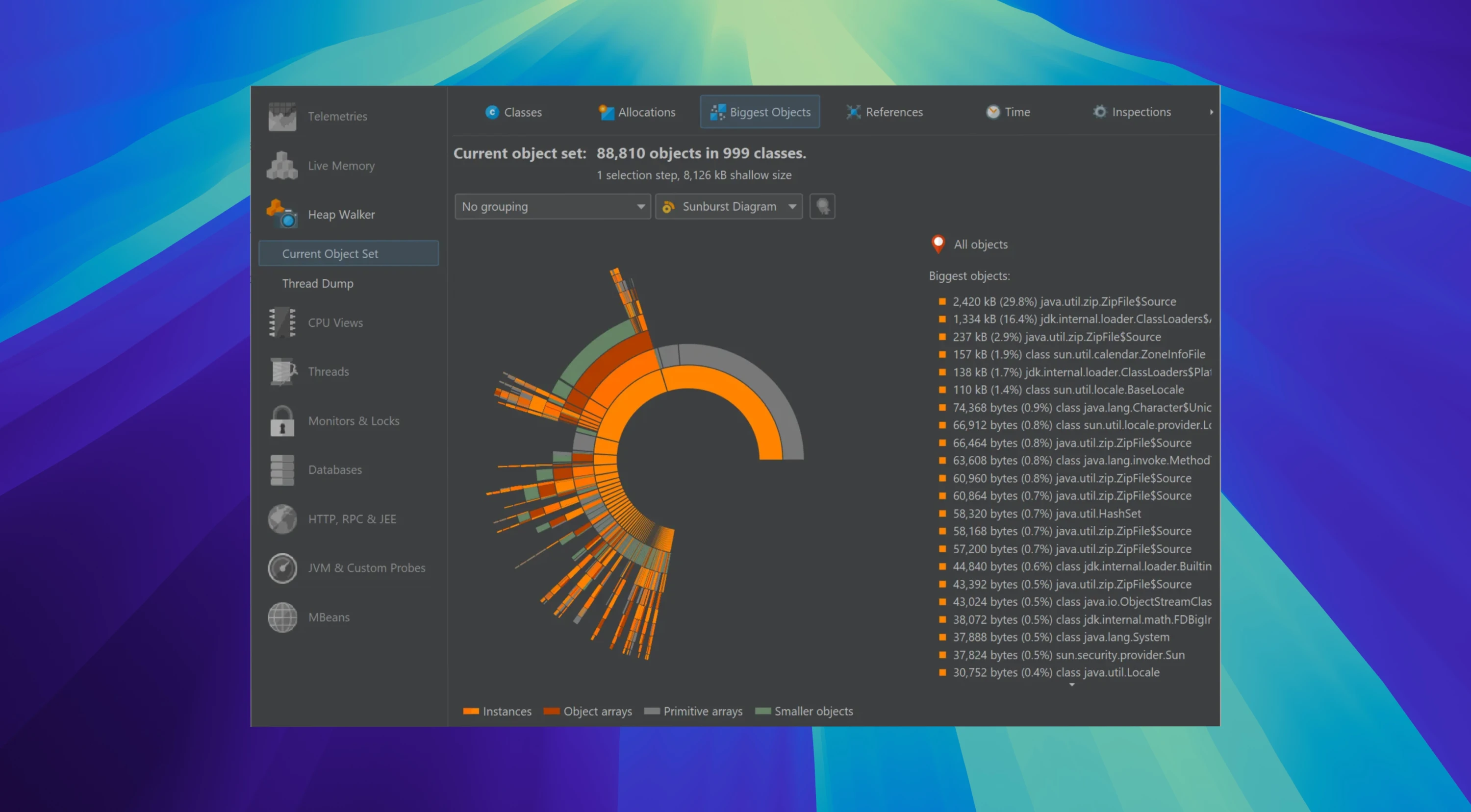 没有合适的工具,找不到内存泄漏是不可能的。JProfiler的堆walker为您提供了一个直观的界面来解决简单和复杂的内存问题。5个不同的视图和大量检查显示了当前对象集的不同方面。每个视图都为您提供有关所选对象的基本见解,并允许您切换到不同的对象集。只需单击鼠标即可回答诸如为什么对象不是垃圾回收的问题。