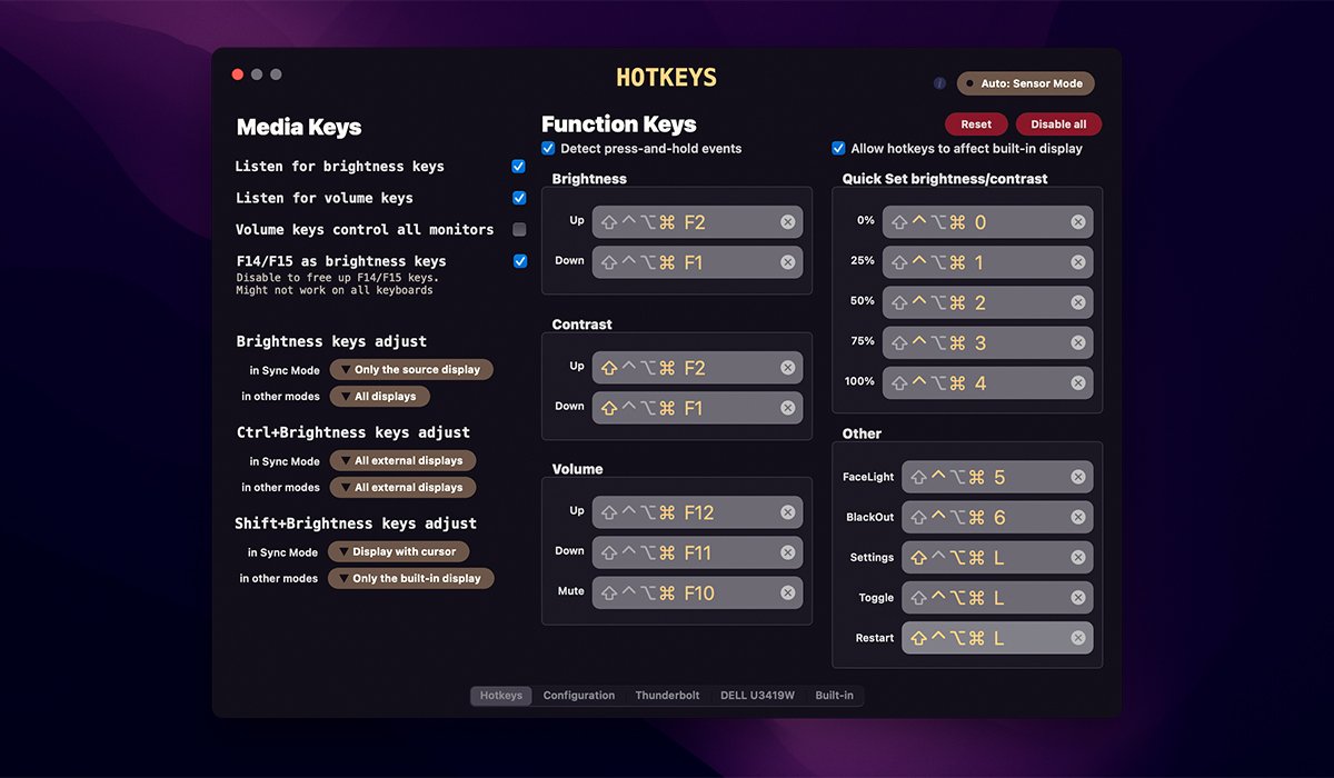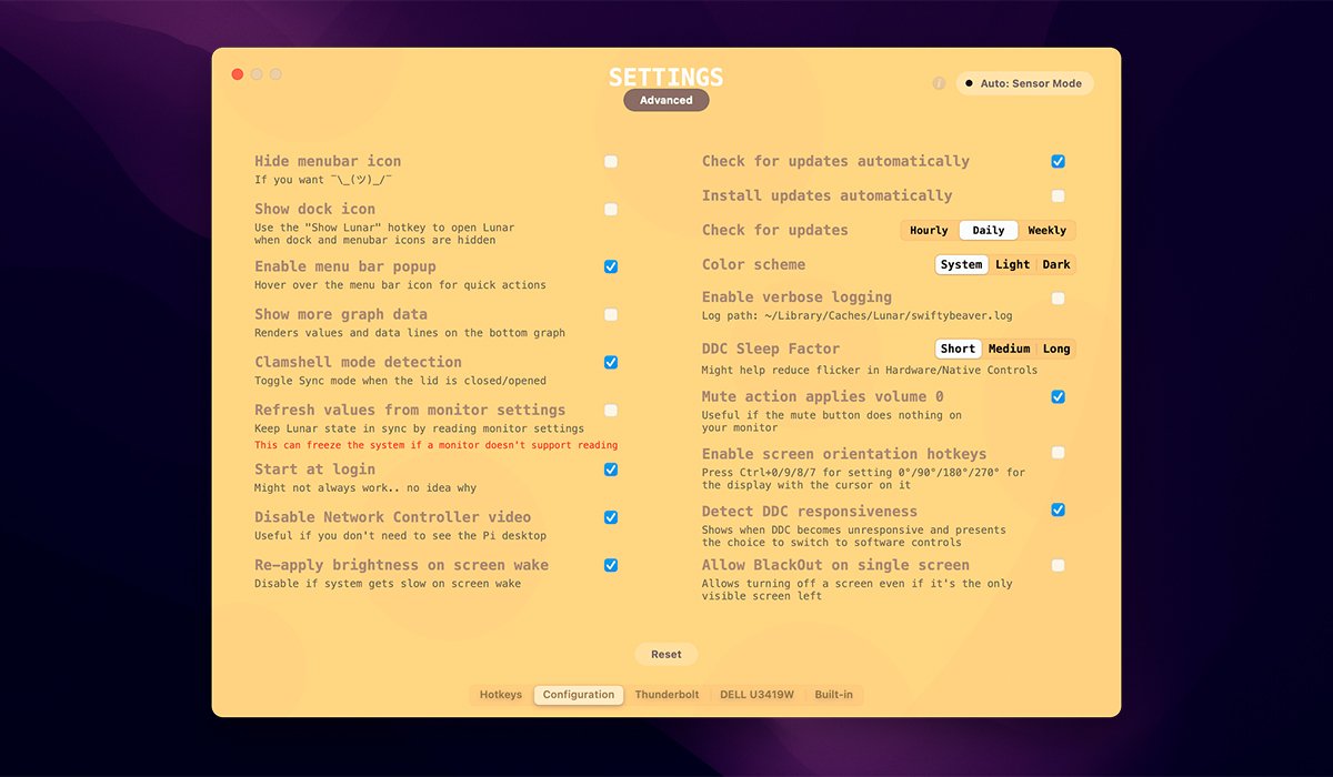 - 启动时,Lunar将覆盖显示器具有的任何亮度/对比度设置