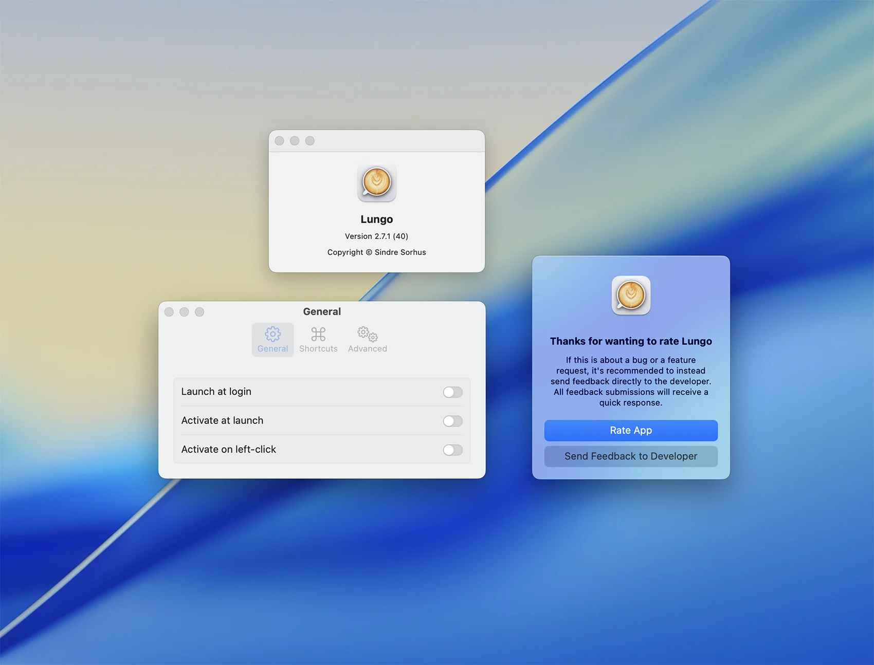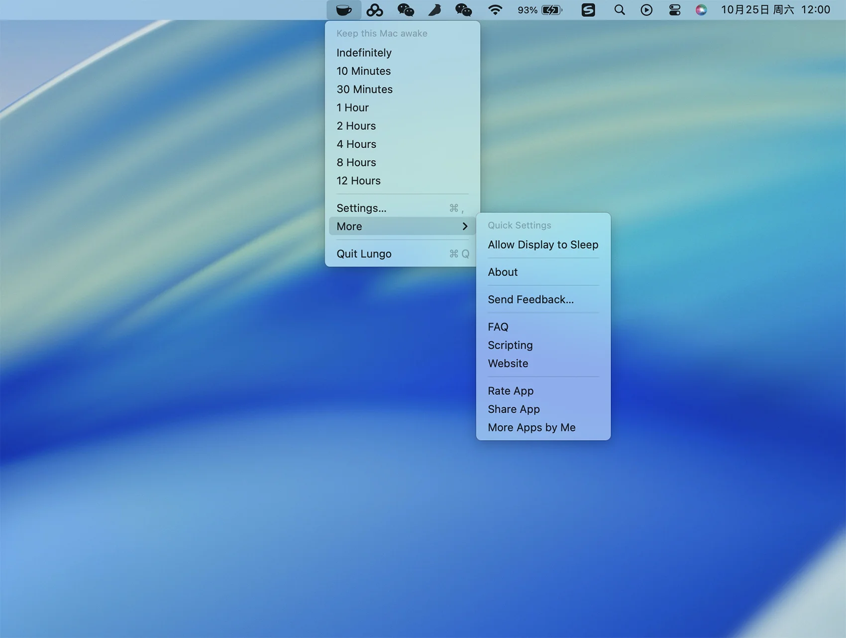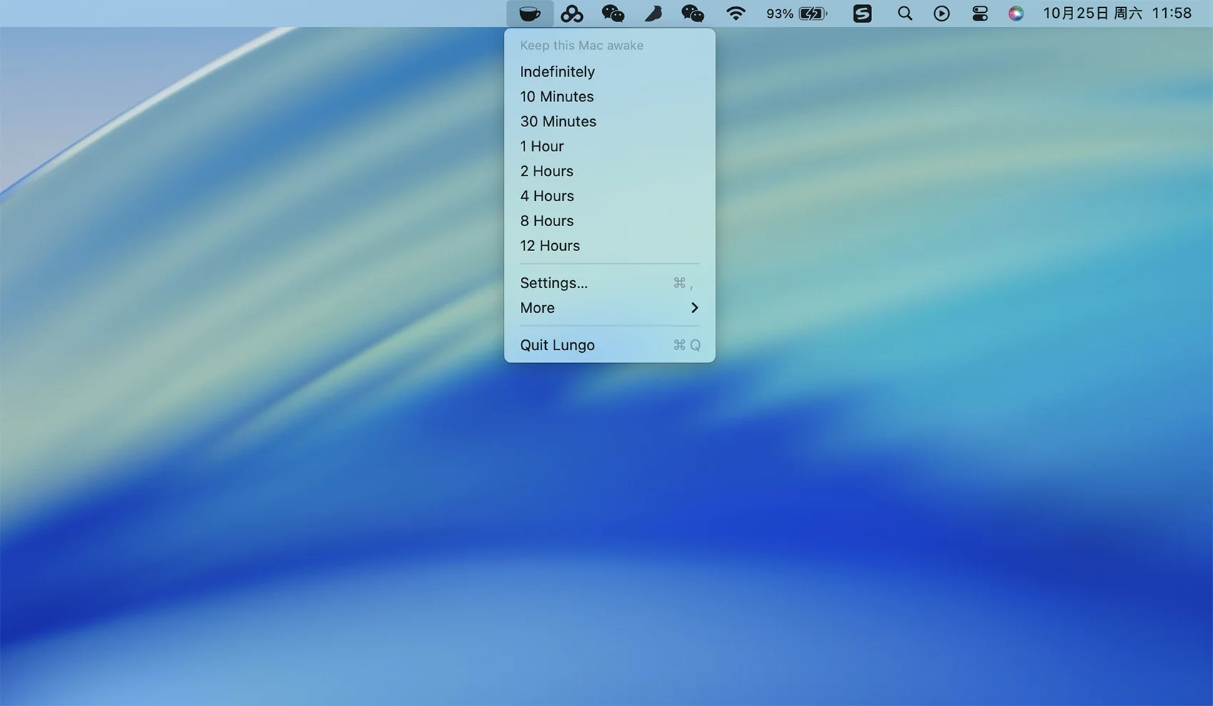 - 在首选项中设置默认持续时间,通过单击菜单栏图标激活Lungo时使用。