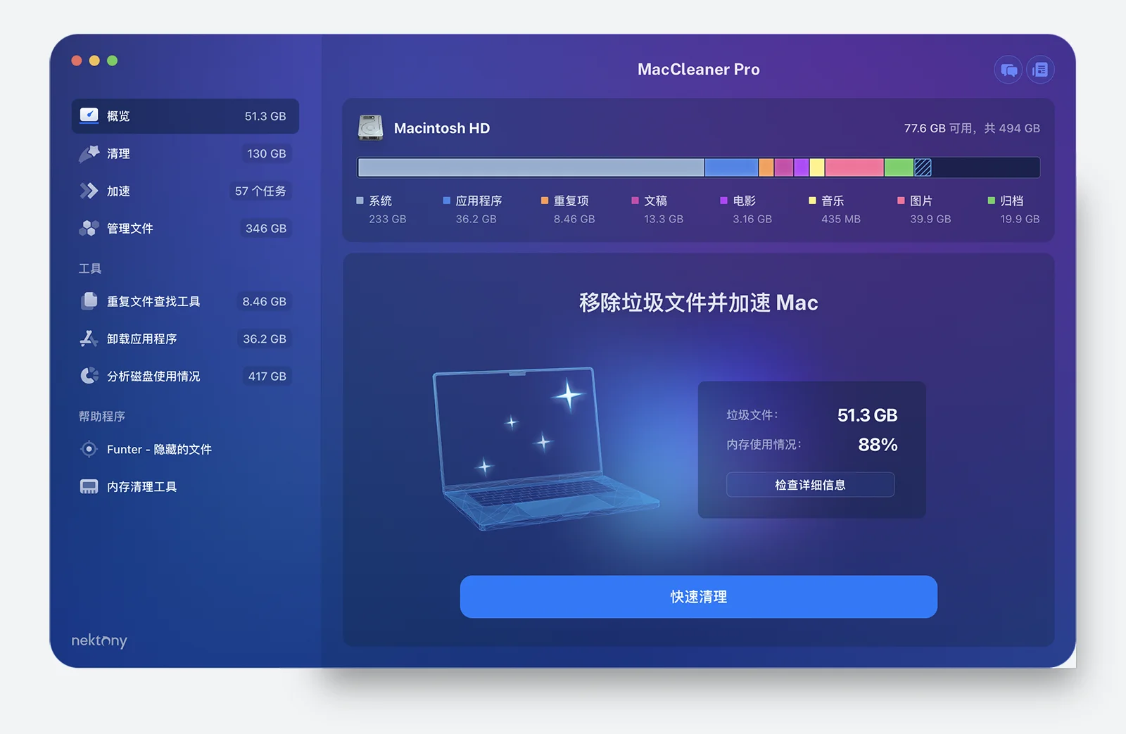 MacCleaner 4 Pro for Mac v4.0 Mac系统清理优化工具中文版