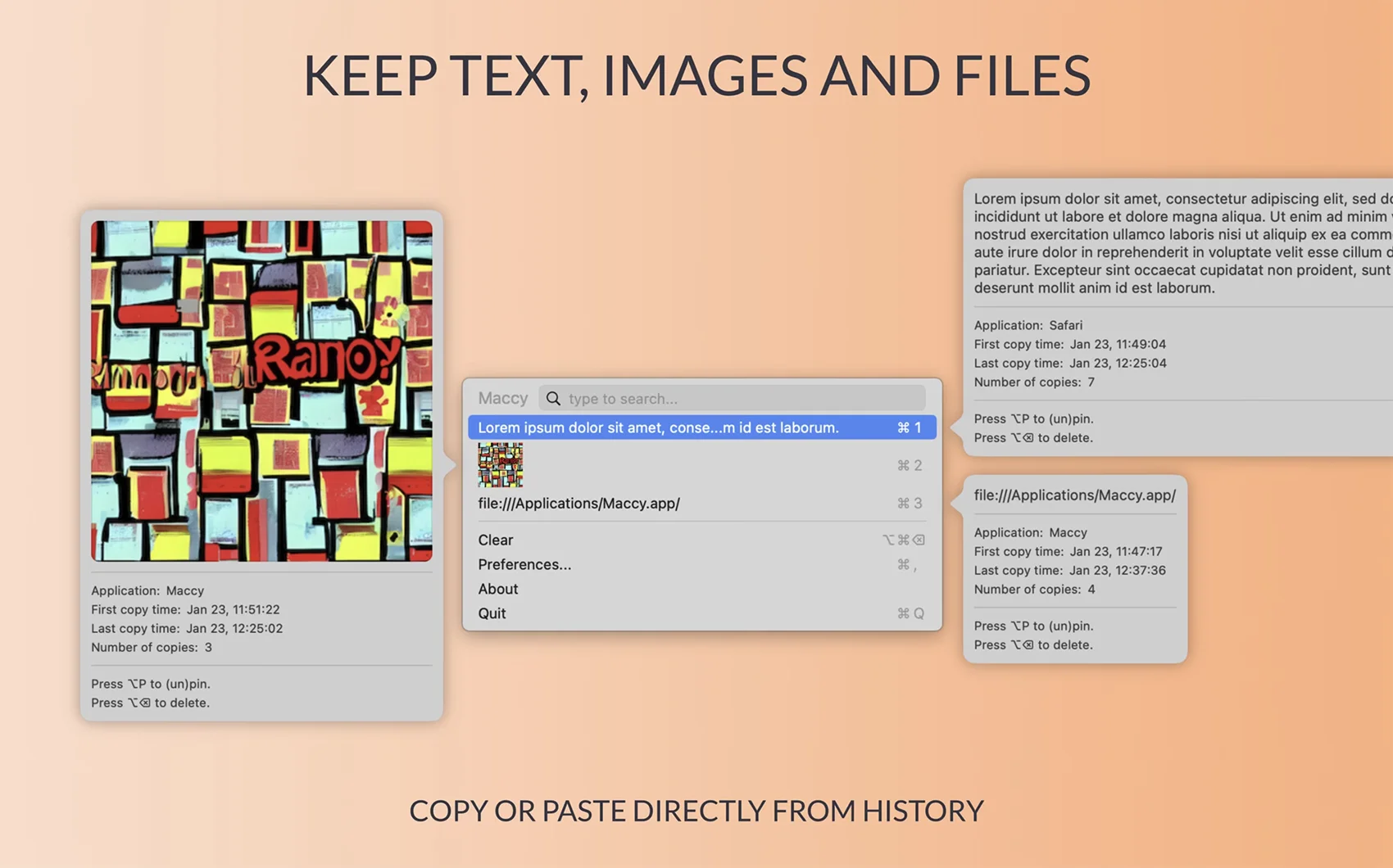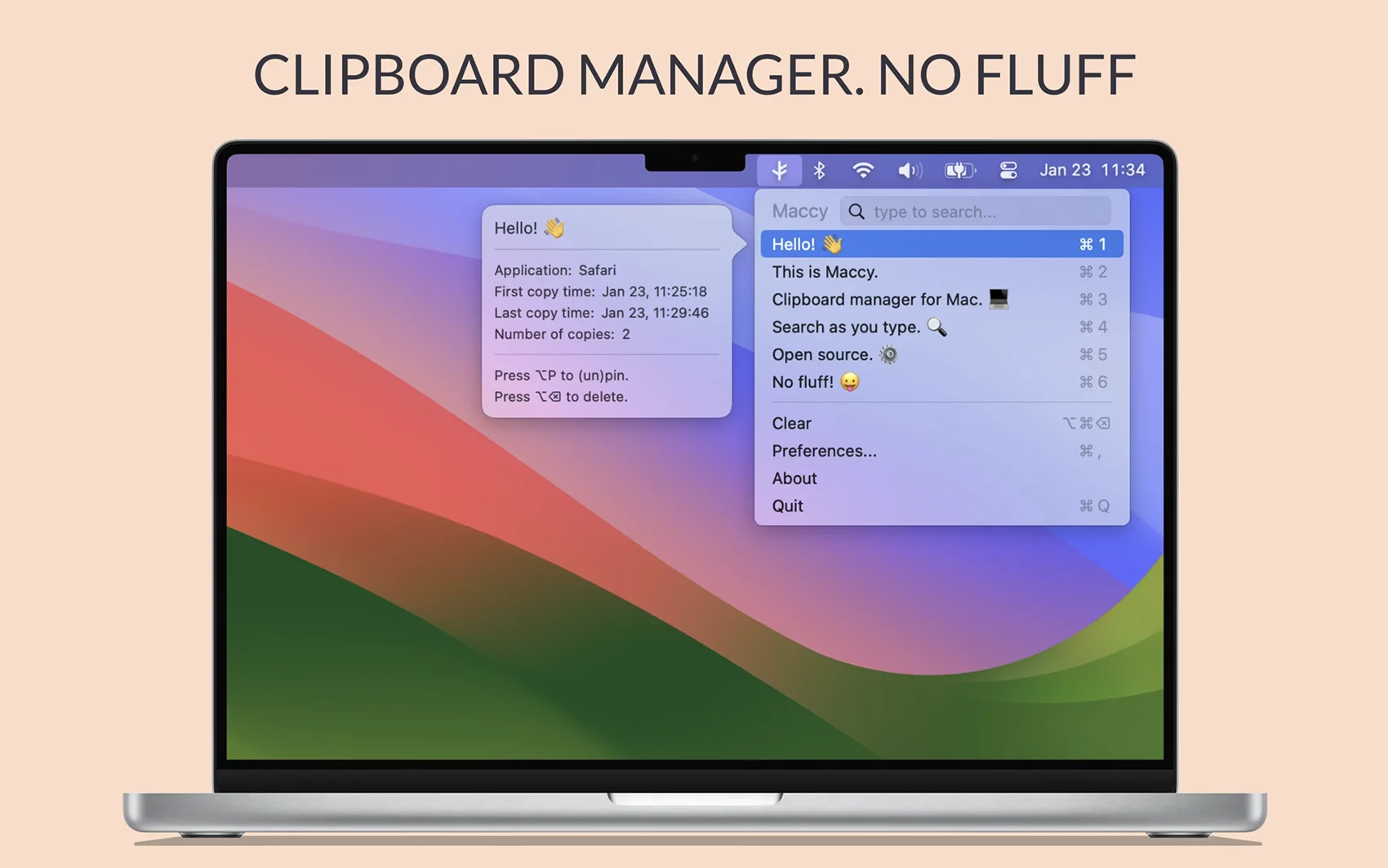 Maccy 是一个轻量级的 macOS 剪贴板管理器。它会记录你复制的历史,并让你快速浏览、搜索和使用以前的剪贴板内容。使用标准的macOS菜单,可以方便和快速的帮助用户搜索需要的复制内容,而且,Mac版Maccy保存了复制内容的历史,让我们随时随地轻松查看、搜索和使用以前的剪贴板内容!有需要的朋友,千万不要错过!