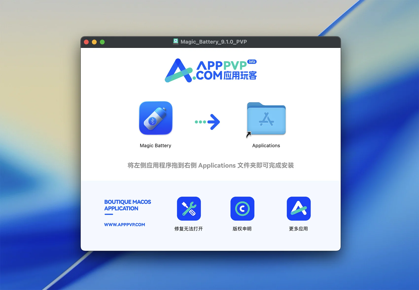 应用玩客 | APPPVP.COM - 精品macOS应用分享,Windows破解软件下载 » Magic Battery for Mac v9.1.0 外部设备电池电量软件中文版
