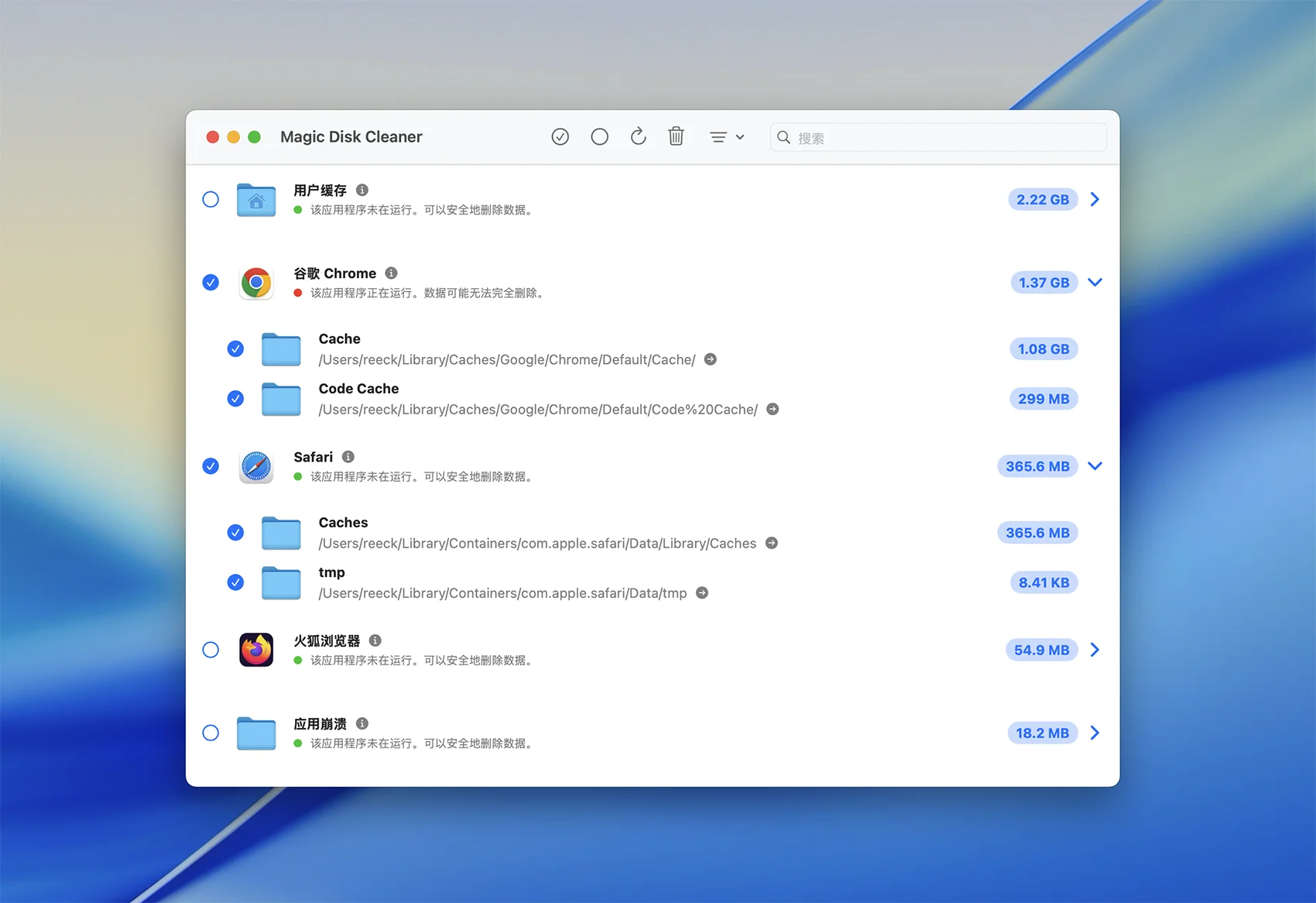 Magic Disk Cleaner for Mac 可以查找并删除浪费大量磁盘空间的临时文件。这款应用速度极快,可立即释放磁盘空间。Magic Disk Cleaner 会搜索您的计算机中的临时文件,并可根据您的需要直接删除它们。