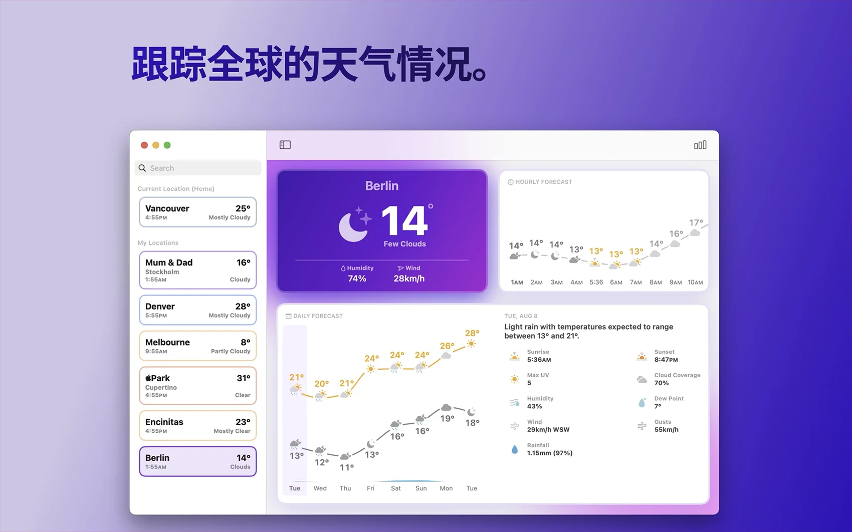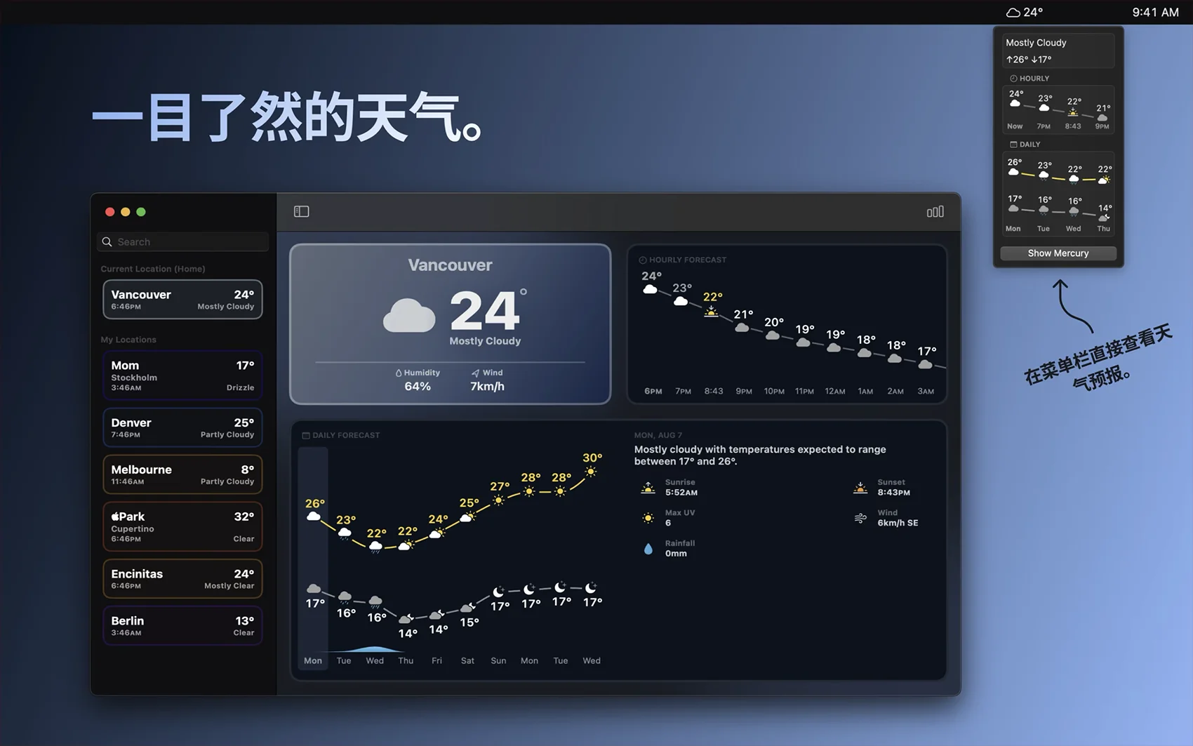 Mercury Weather for Mac v3.0.1 准确的天气预报实时查看软件中文版