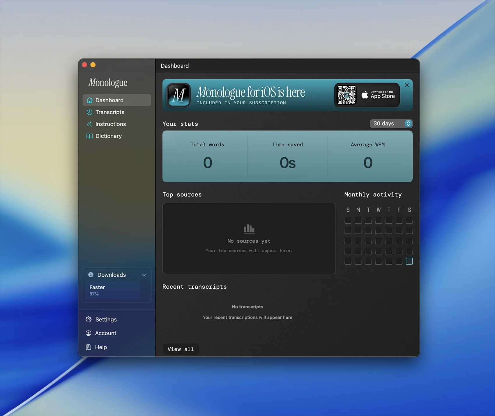 应用玩客 - 精品macOS应用分享 » Monologue for Mac v1.0.64 语音文本自动转换工具