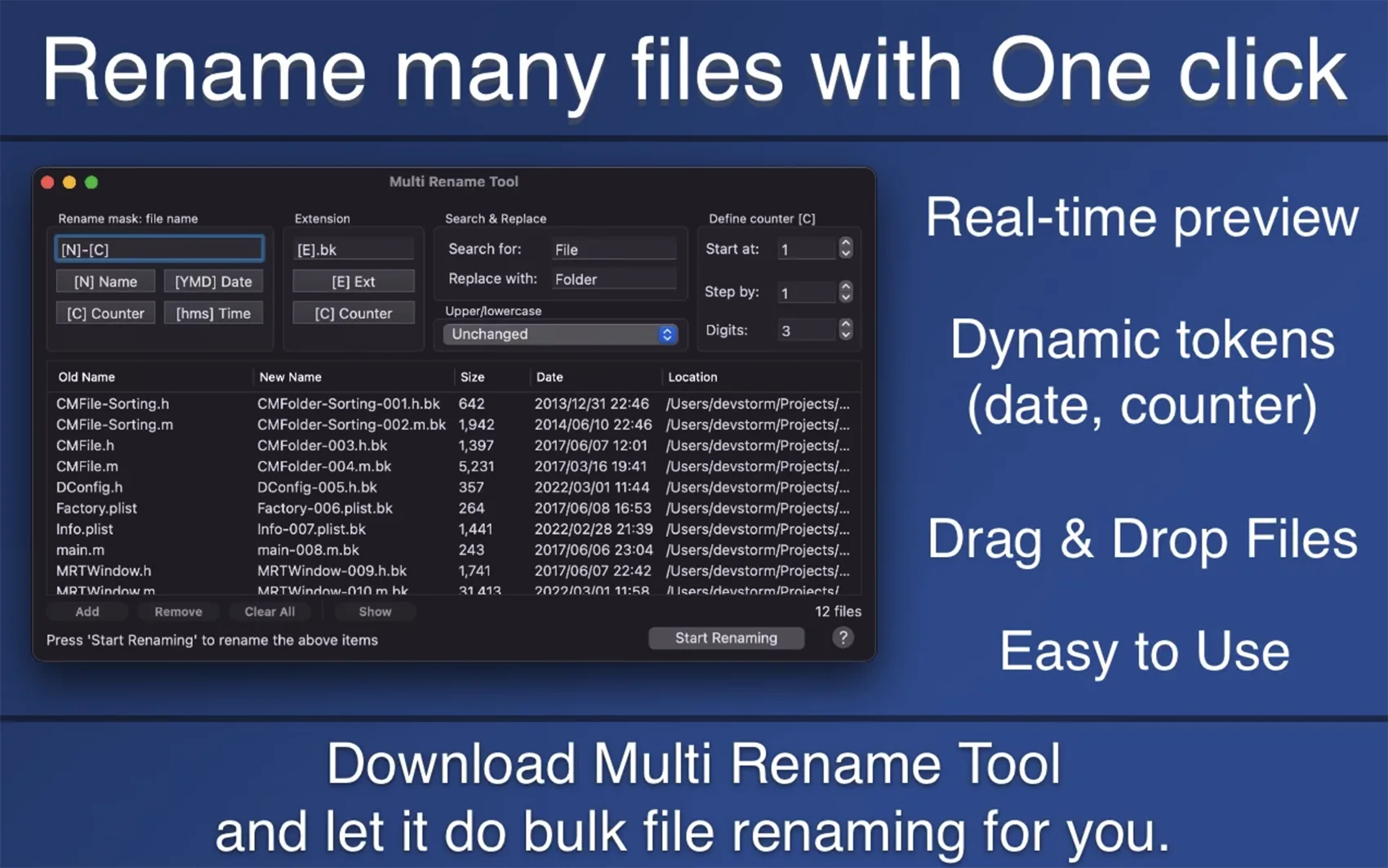 如何在Mac电脑上快速高效的批量处理重命名文件呢?Multi Rename Tool 是一款功能强大的批量重命名软件。它提供了许多您需要的功能,可以一次快速重命名数千个本地和远程文件。它可以满足您的一切需求,而且速度很快。
