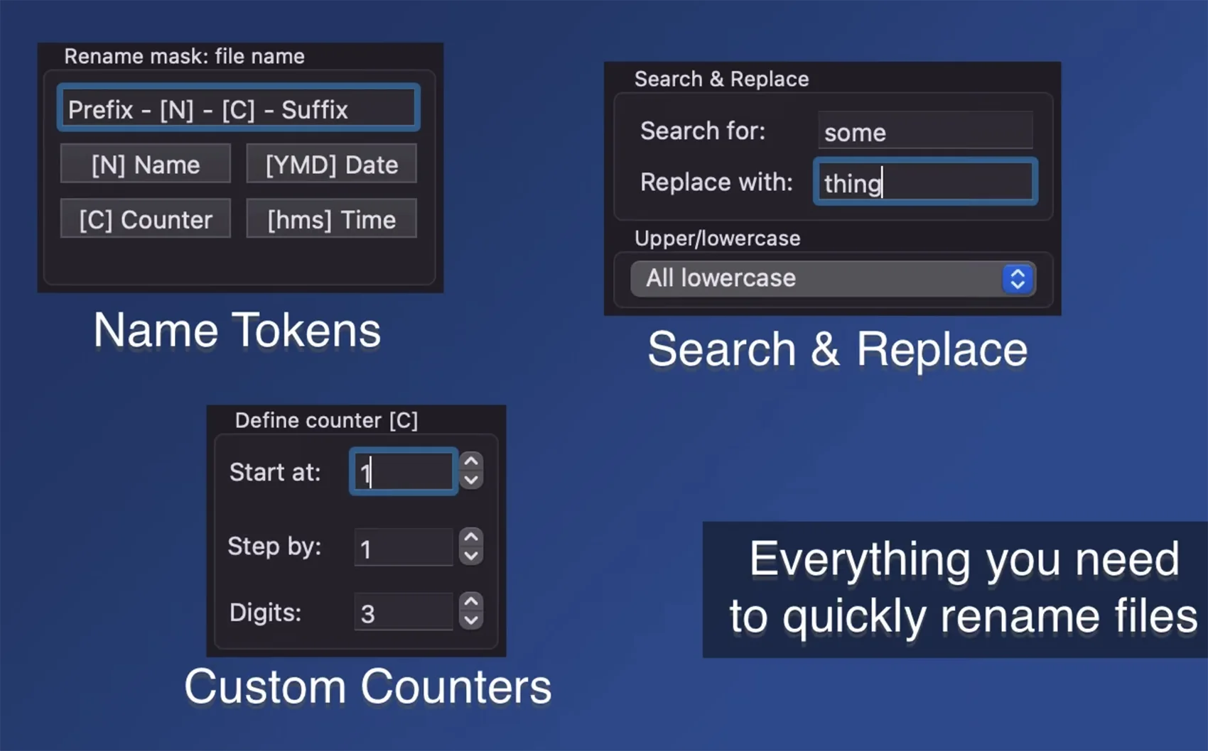 如果手动完成,重命名多个文件通常需要很长时间。使用智能多重命名工具几乎可以立即完成。想象一下,您几乎可以立即将 1000 个文件重命名为具有计数器或日期、任何前缀、后缀甚至更改某些字符的名称。