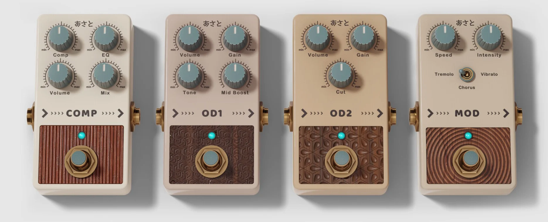 - OD1:一款中等增益的过载效果器,在较低增益值下也能很好地用作增益提升或音色塑造工具。中频提升控制是根据 Mateus 的要求定制的。
