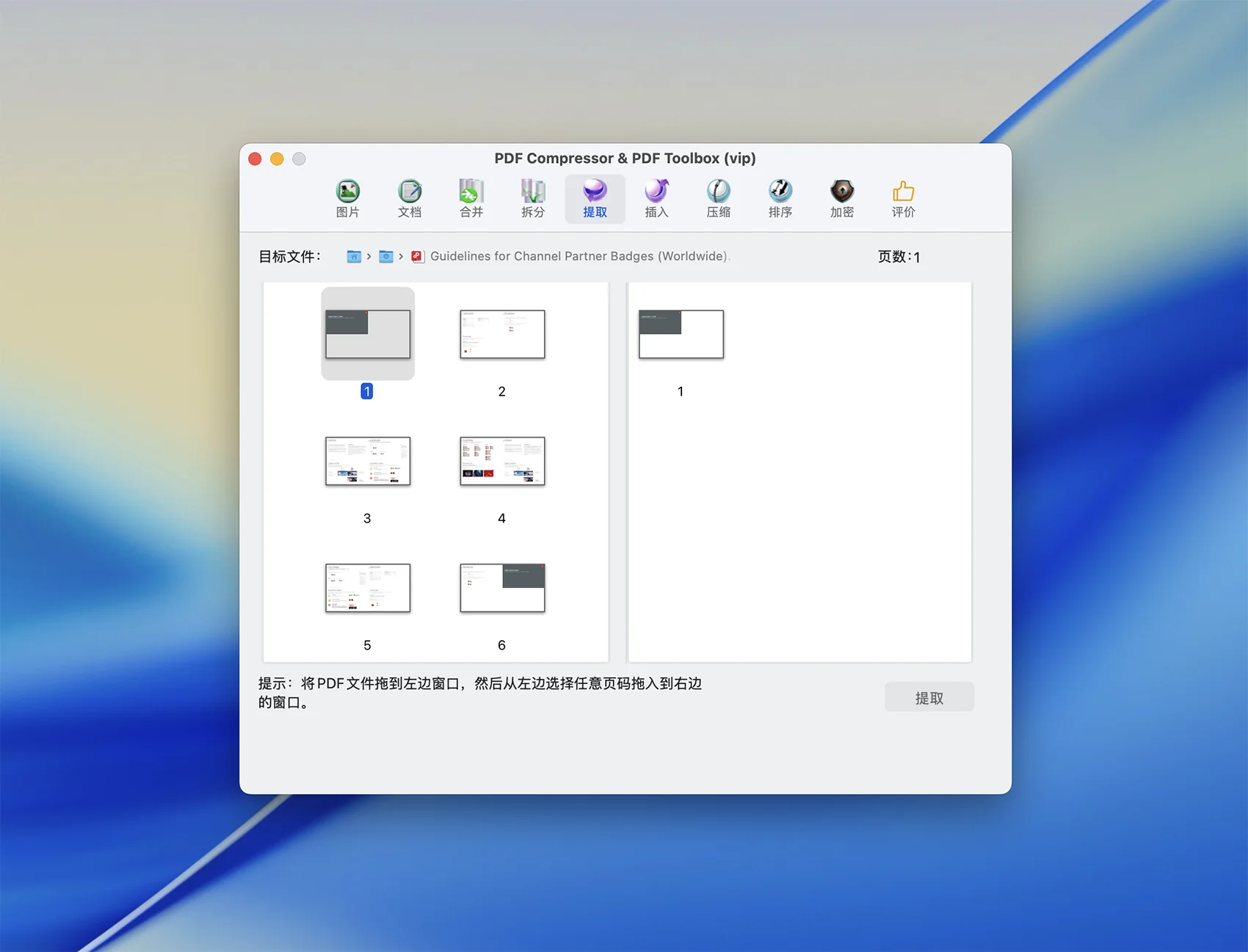 您可以从一个或多个PDF文件中任意提取页码合并成一个新的PDF文件;
