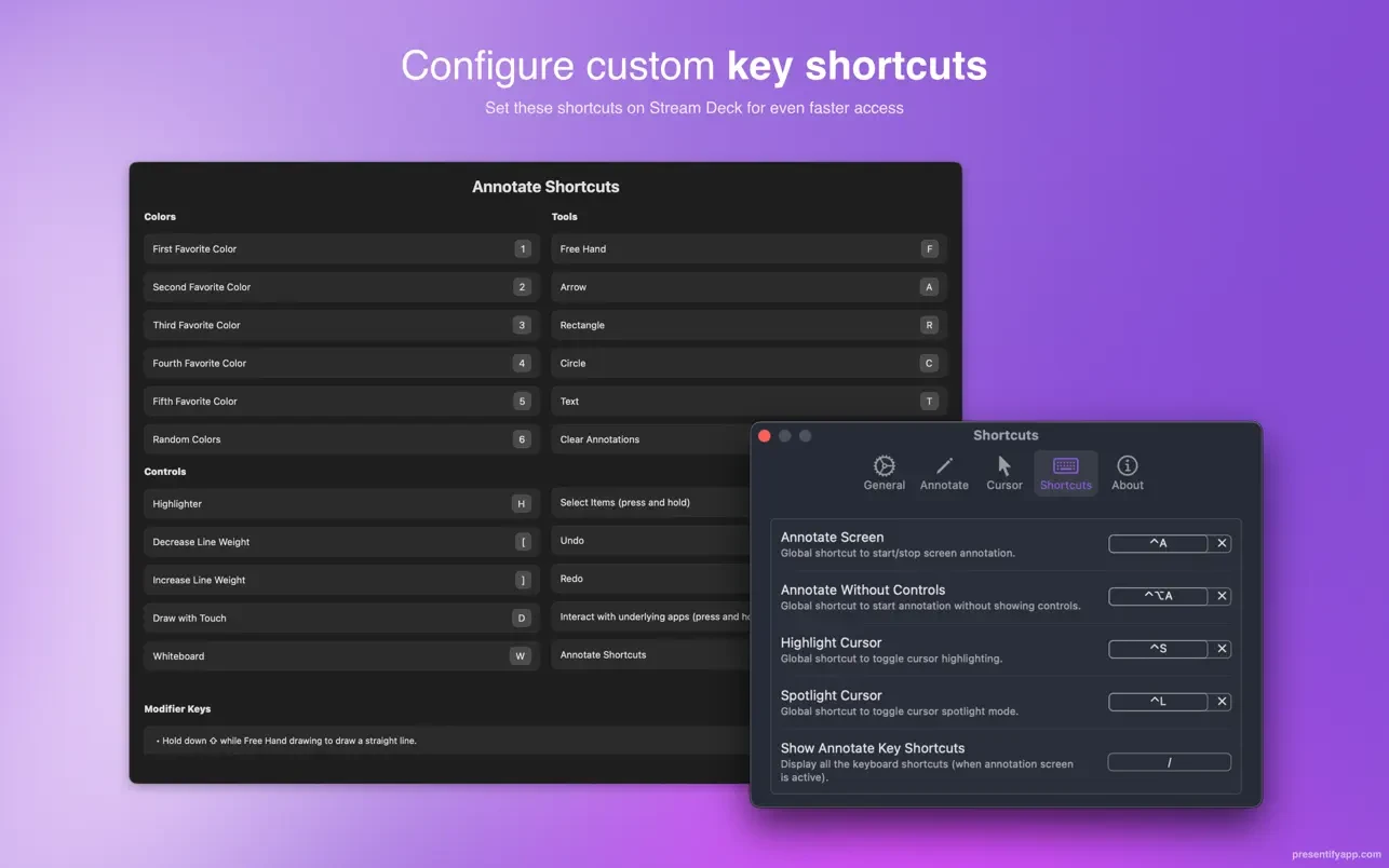 - 您可以使用简单的键盘快捷键在任何应用程序中注释屏幕,突出显示光标,更改绘图颜色和形状等。