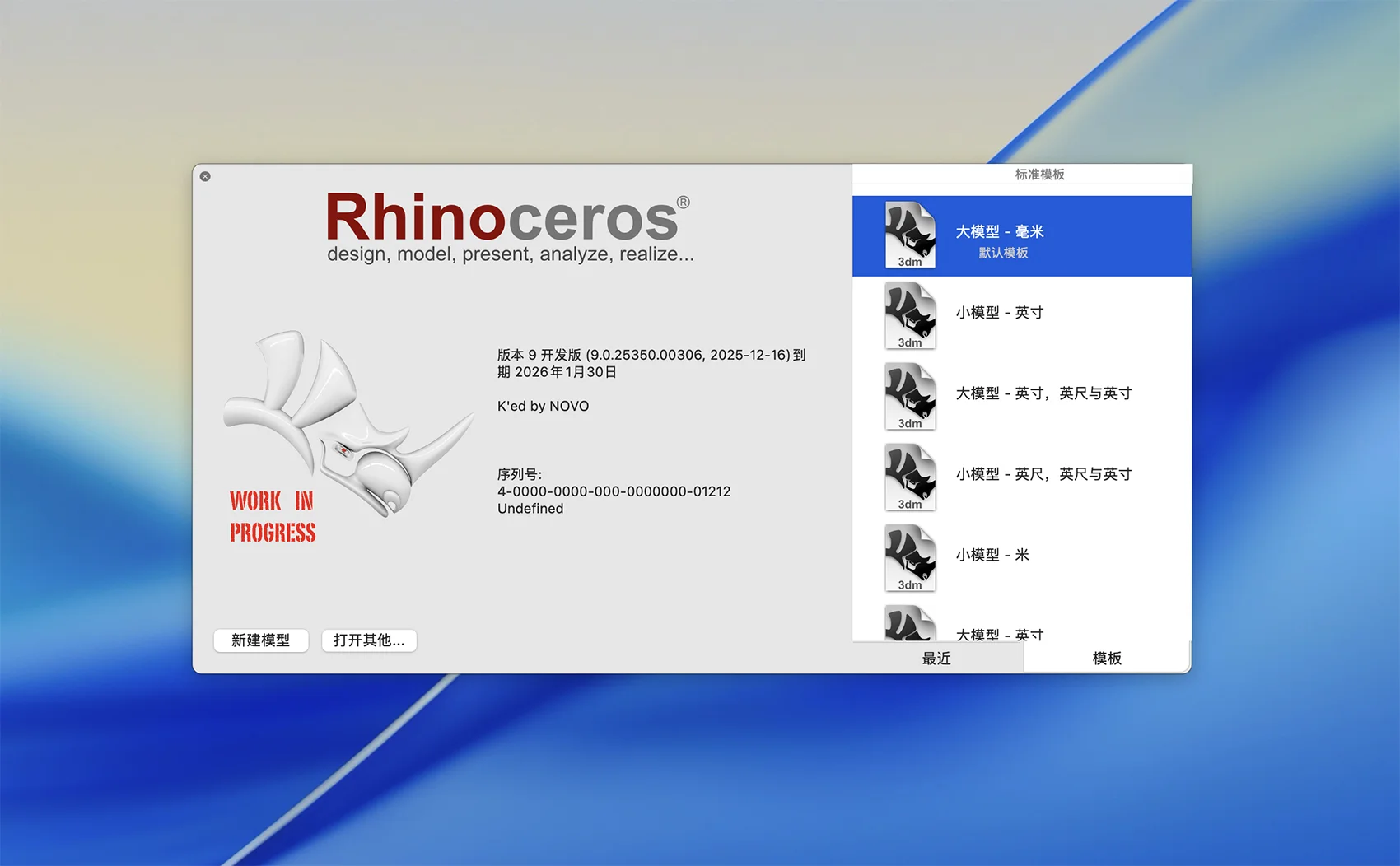 - Rhino 9 WIP 开发版本,如有版本过期提示不需要理会!