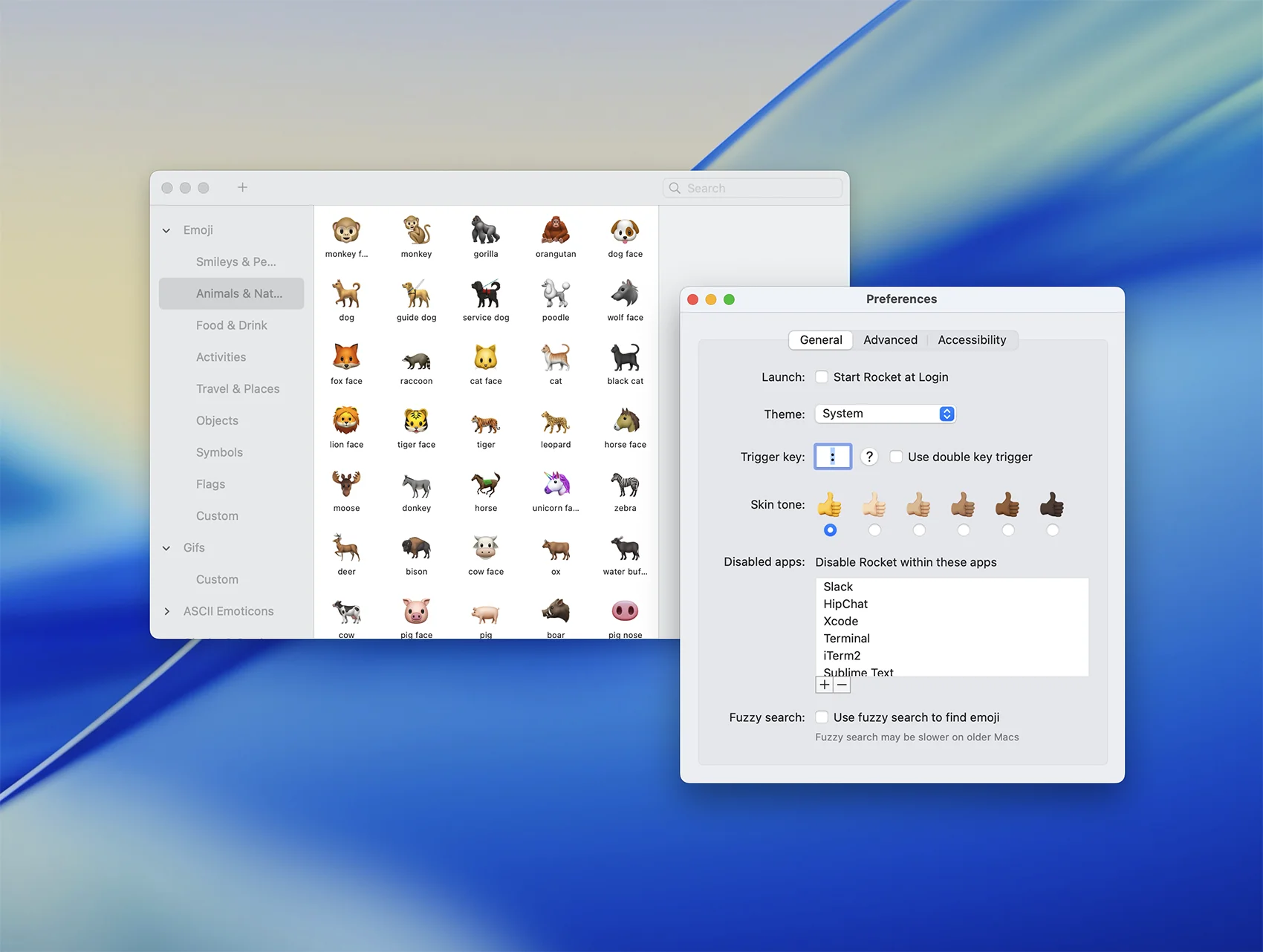Rocket 可以立即显示建议和自动完成功能——比 macOS 内置的表情符号面板(Control + Command + 空格键)更快、更方便。