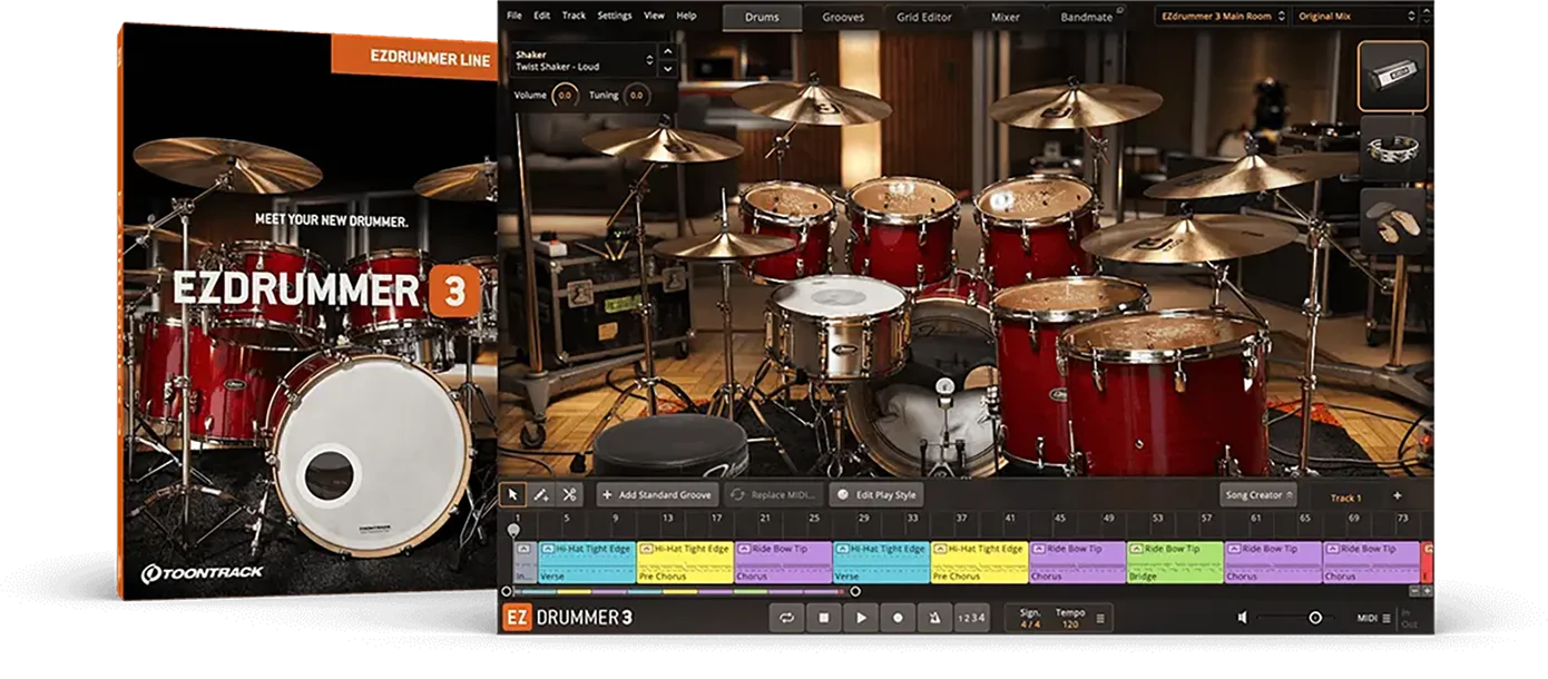 EZdrummer 3 彻底改变了鼓制作软件在歌曲创作中的角色。它赋予您创作的自由,让您能够使用一系列易于使用的全面功能,无需离开软件即可创作出完整的鼓音轨。