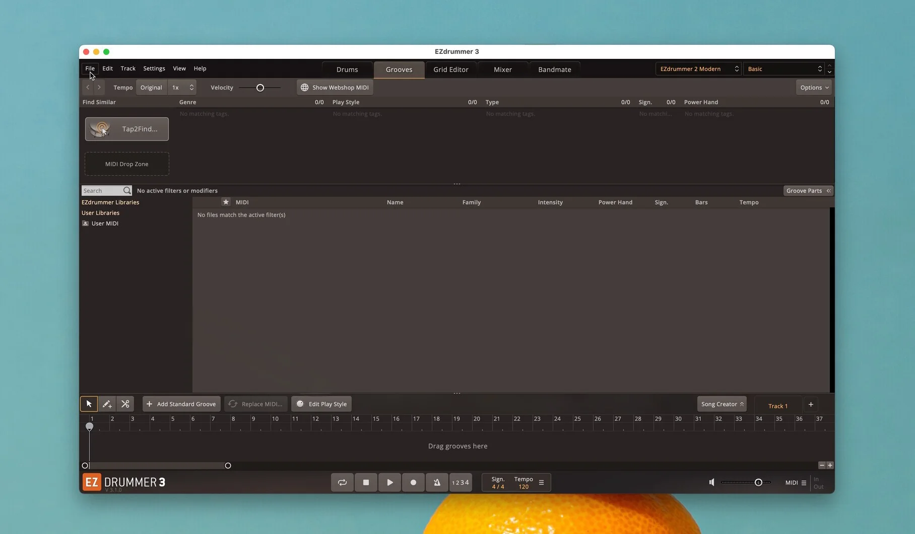 听到脑海中完美的节奏了吗?使用 Tap2Find 功能,EZdrummer 3 会列出最佳匹配。