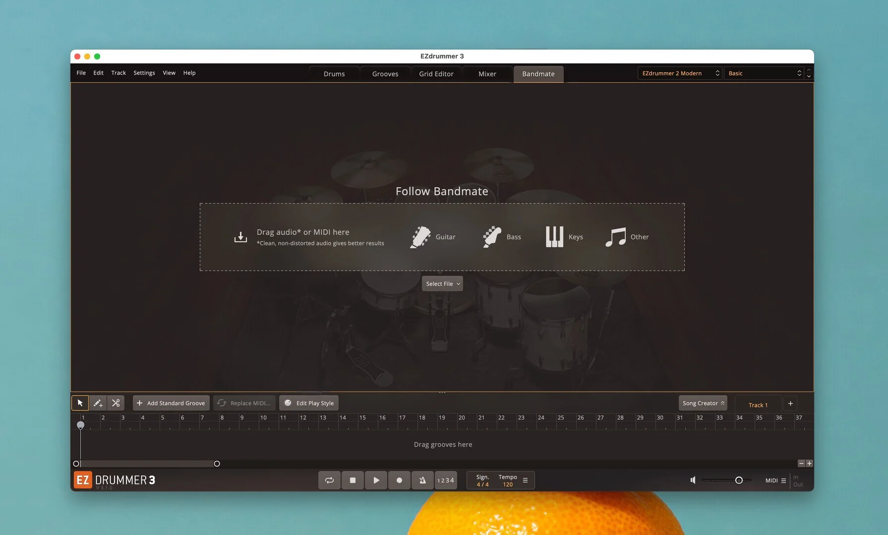 只需拖放您的音频或 MIDI 数据,Bandmate 就会立即提供建议。