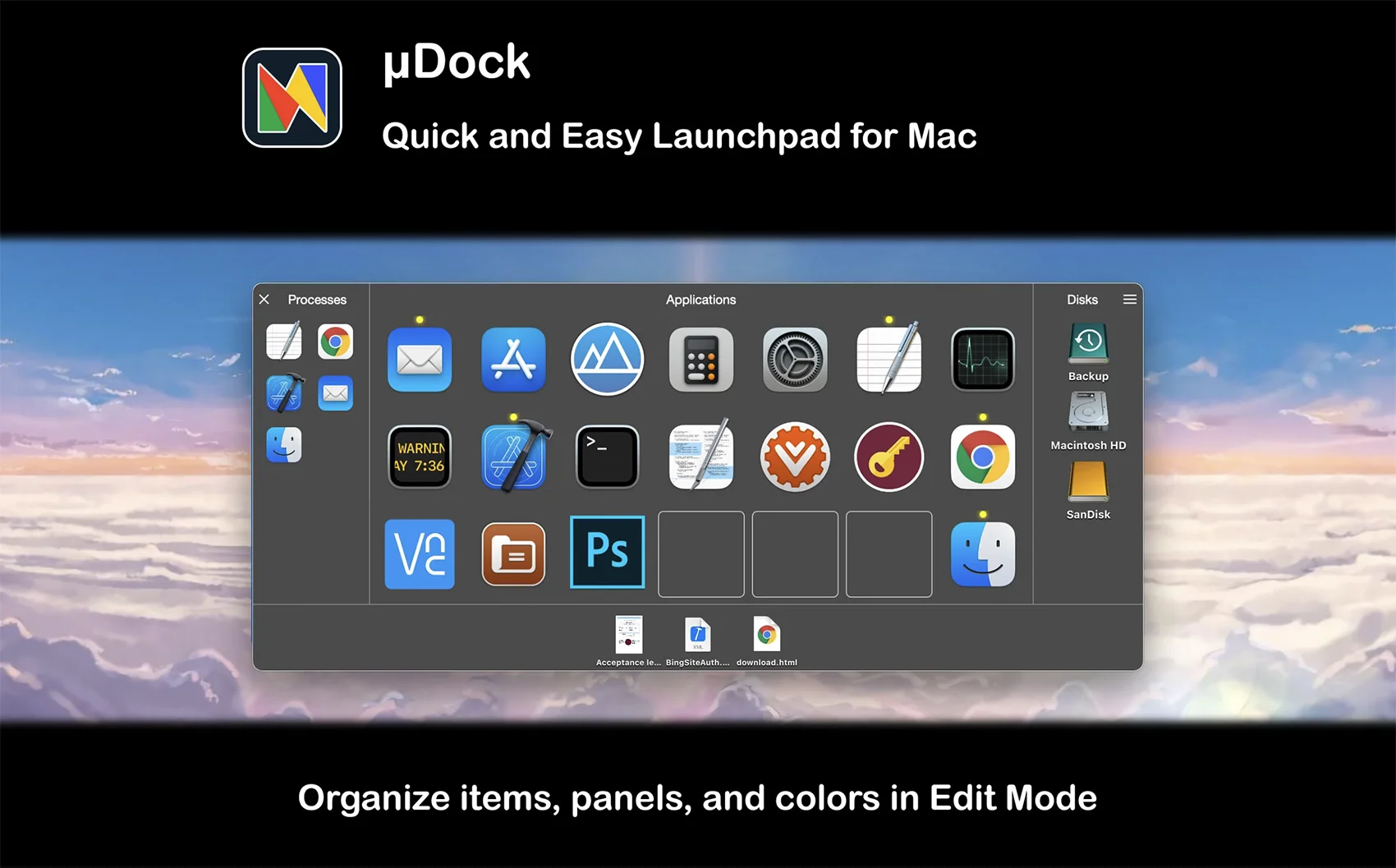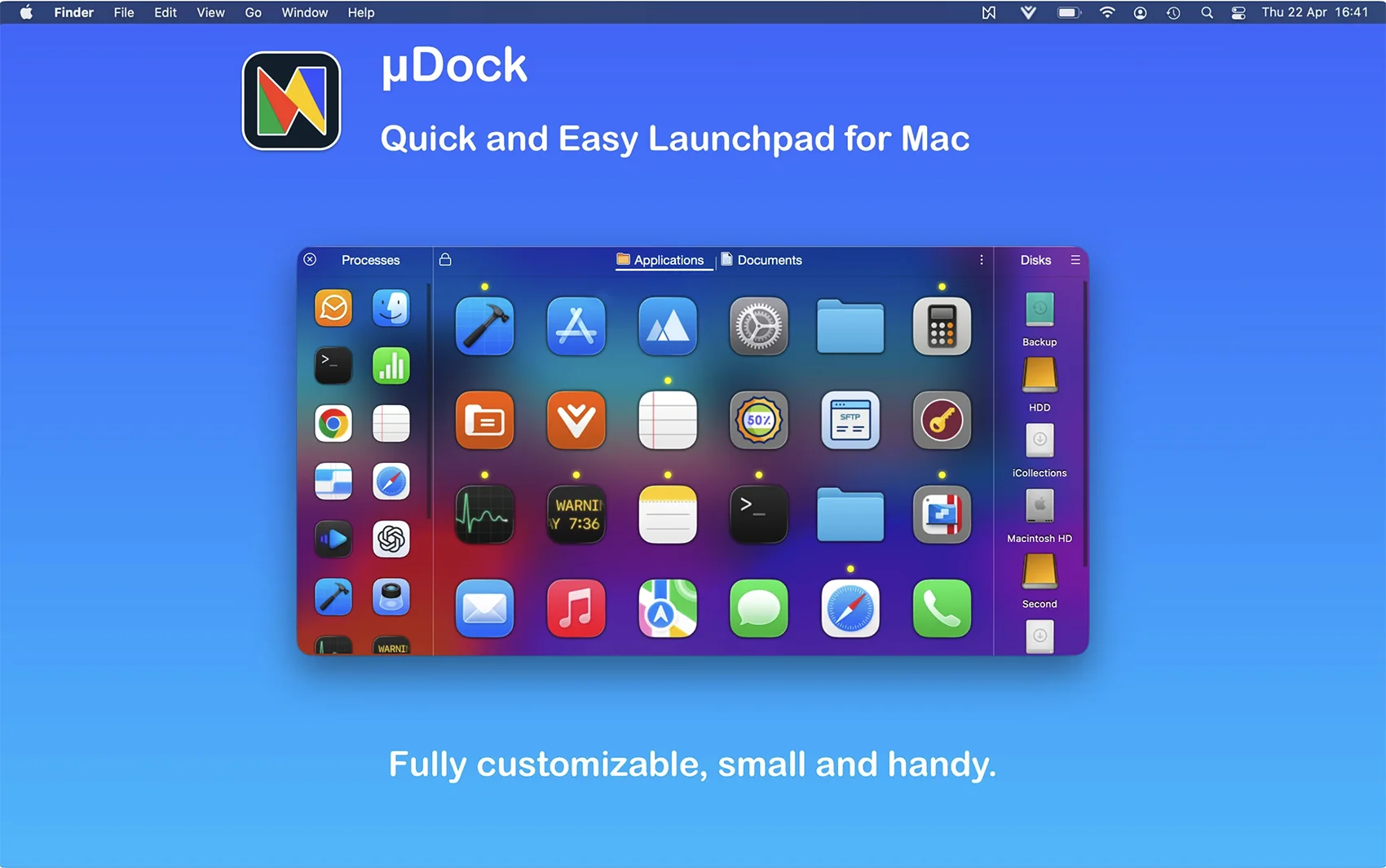 应用玩客 | APPPVP.COM - 精品macOS应用分享,Windows破解软件下载 » uDock for Mac v4.8.3 Dock栏快速启动扩展工具