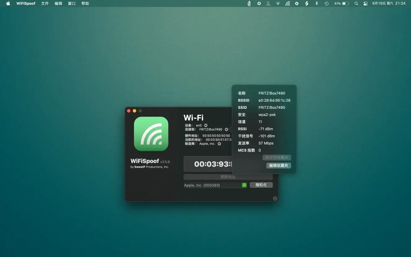 应用玩客 - 精品macOS应用分享 » WiFiSpoof for Mac v4.1.5 系统Mac网络地址修改工具