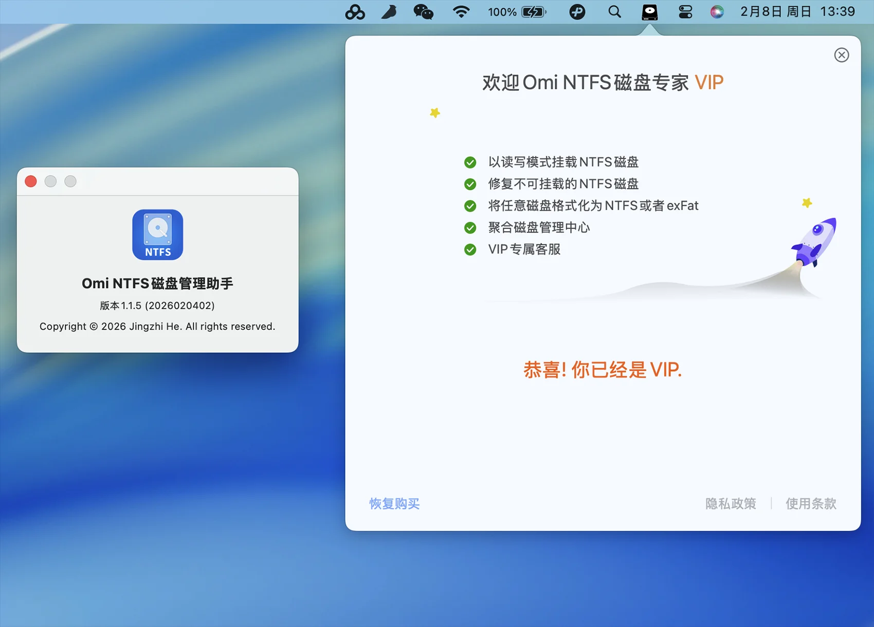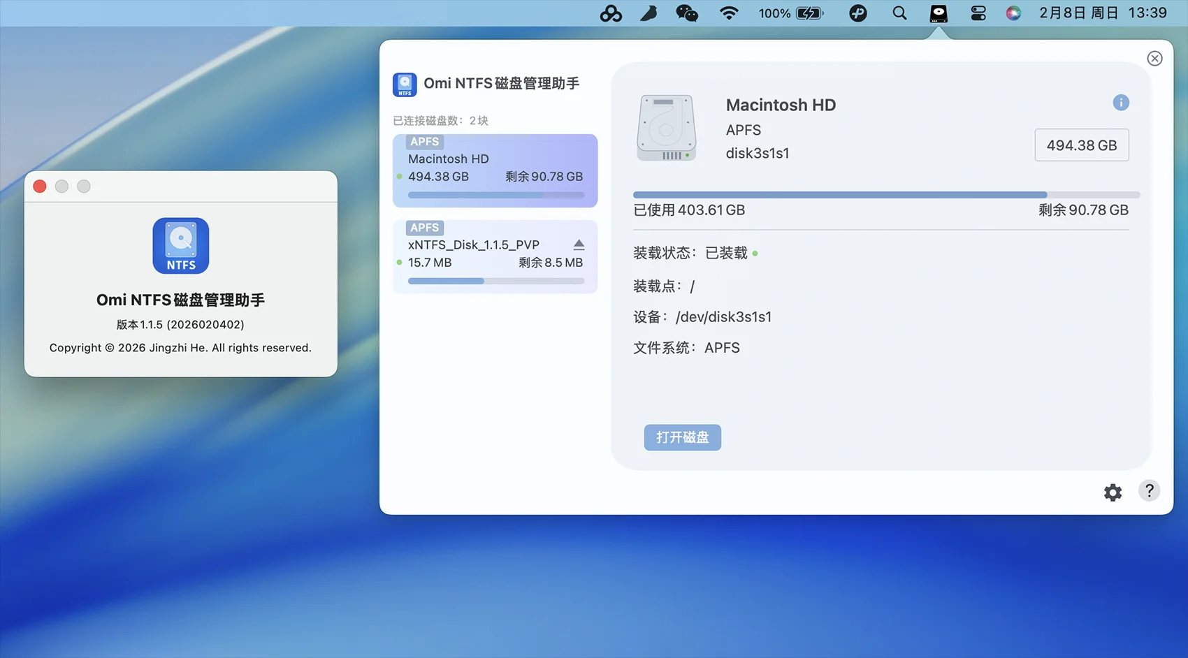 NTFS Disk by Omi NTFS for mac v1.1.5 最佳NTFS磁盘管理助手中文版