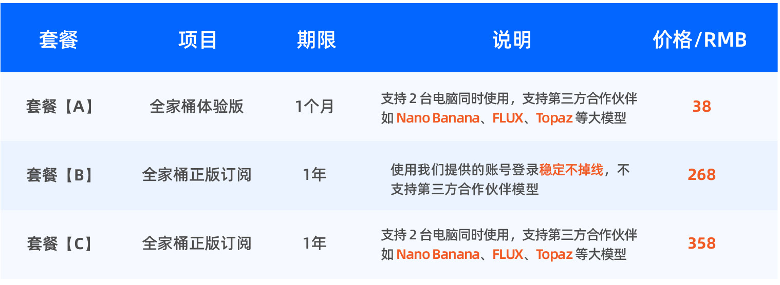 会员福利价格: 本站会员福利价见下面表格,包含 Adobe 全系列所有软件,支持 Mac、Win、iPad、手机端全平台使用!