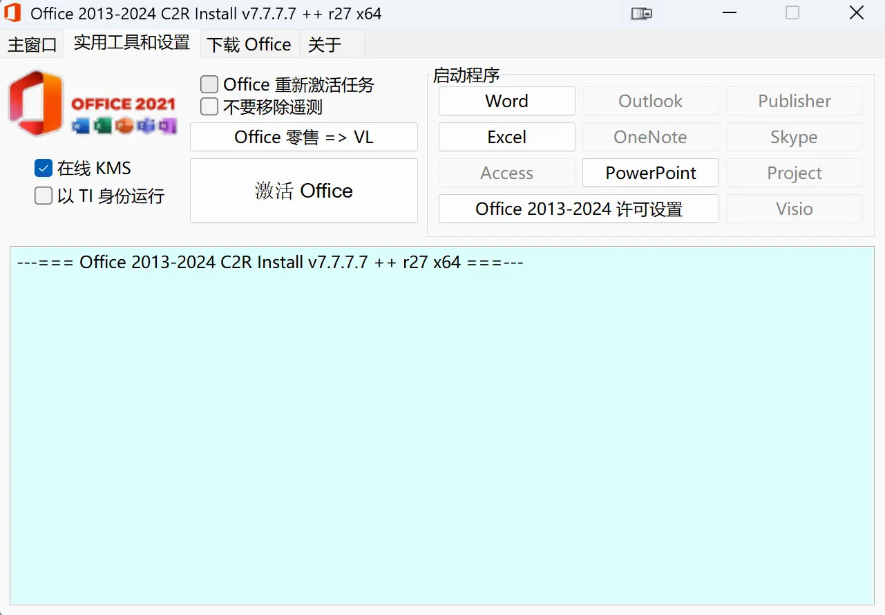 C2R Install v7.7.7.7 Windows/Office 2013-2024激活工具中文版